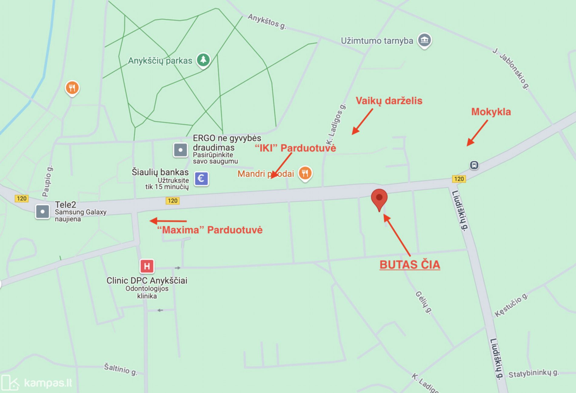 Namo lokacija - viena patogiausių Anykščių mieste. Rami vieta, bet visiškai centrinė - šalia parduotuvės, kavinės ir restoranai, paslaugų centrai - viskas pasiekiama pėsčiomis vos per kelias minutes. Netoliese Anykščių gamta ir pasivaikščiojimų takai. Šis šviesus ir saulėtas butas tai namai, į kuriuos gera grįžti ir dar maloniau juose būti kasdien.