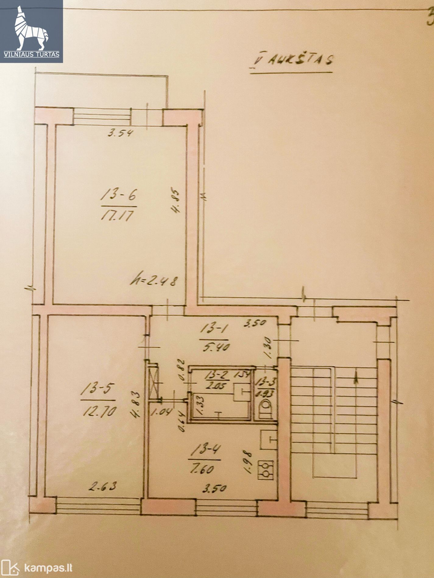 2 kambariai (13 kv. m. ir 17 kv. m.) ir virtuvė (8 kv.m.), protingai perplanuotos erdvės – daugiau patogumo ir netgi atsirado vieta namų biurui;