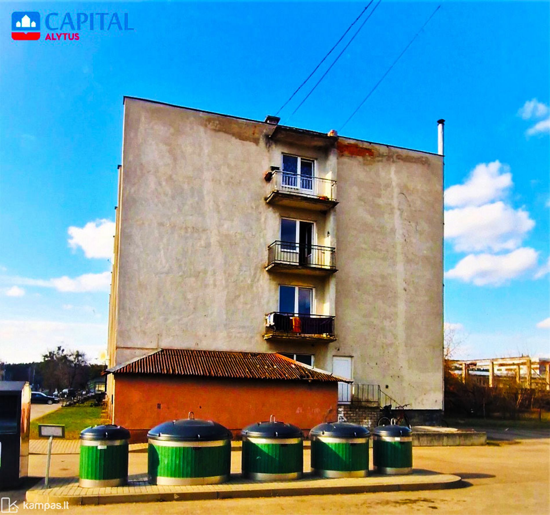 - Namas nerenovuotas, bet sutvarkyta aplinka: nauji atliekų rūšiavimo konteineriai, erdvi, nuo gatvės medžiais atitverta, automobilių aikštelė.