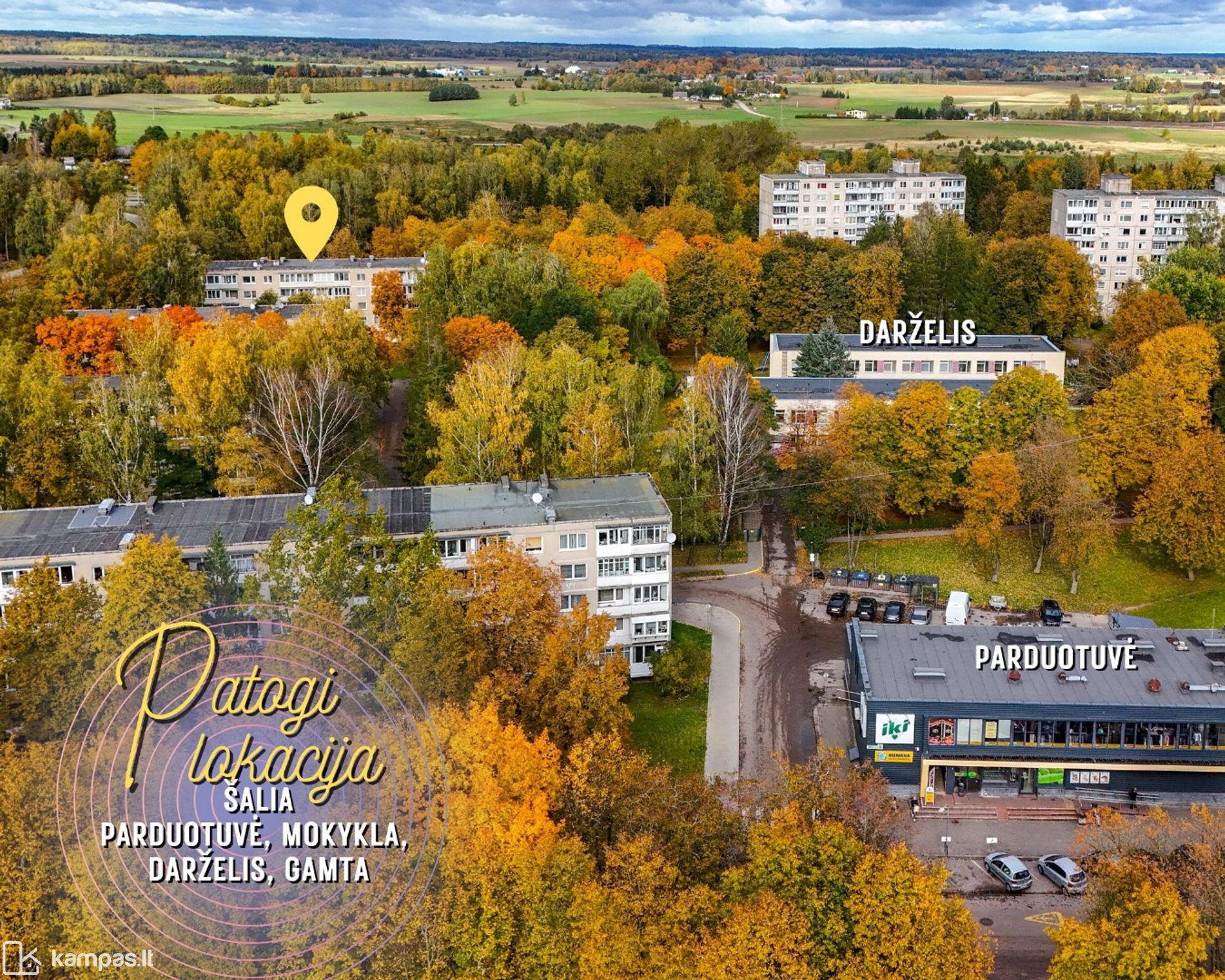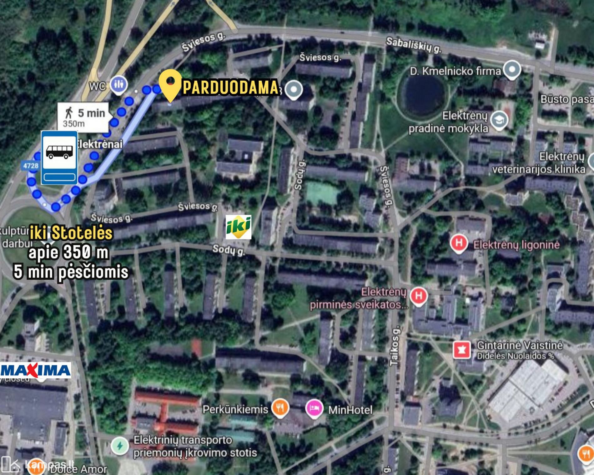~350 m (5 min pėsčiomis) iki parduotuvės IKI;