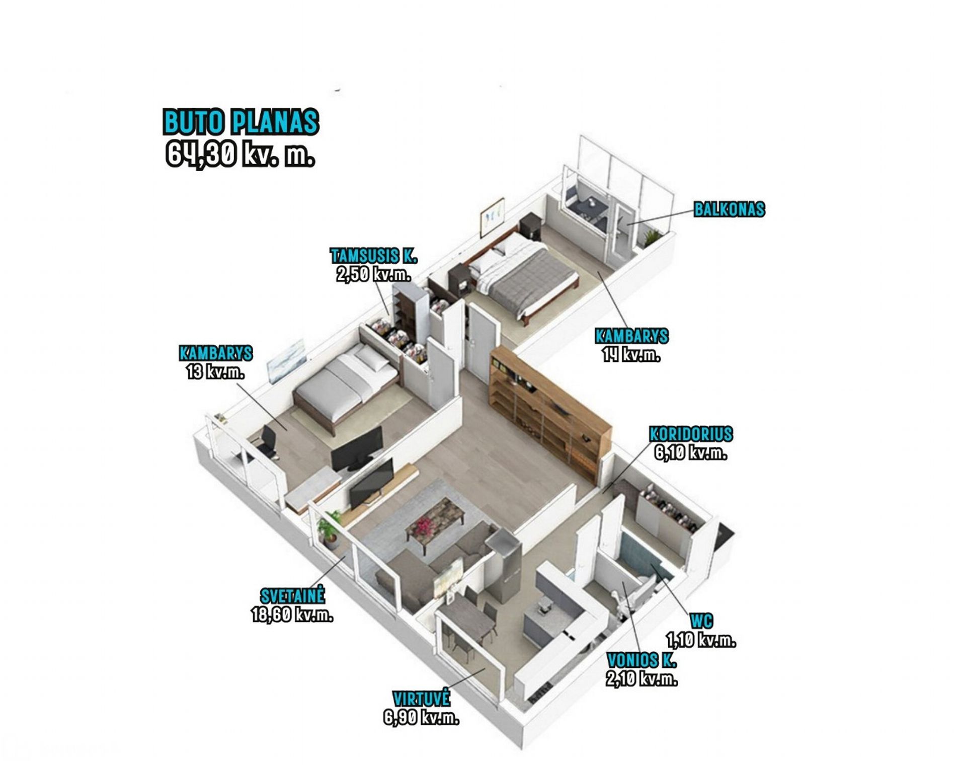 • Bendras plotas – 64,30 kv. m.