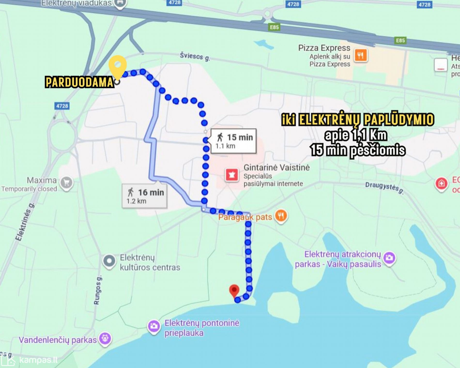 ~550 m (8 min pėsčiomis) atstumas iki Elektrėnų centro;