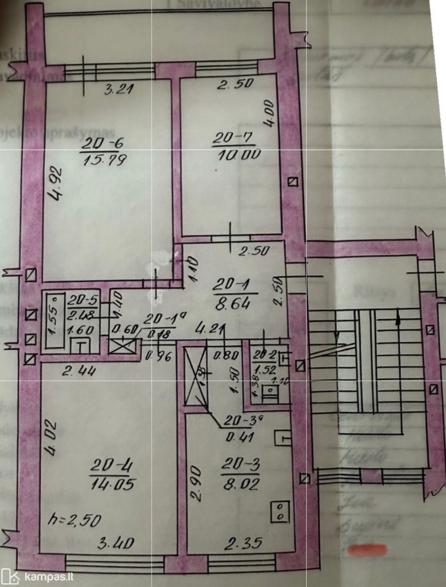 • Kambarių skaičius – 3;
