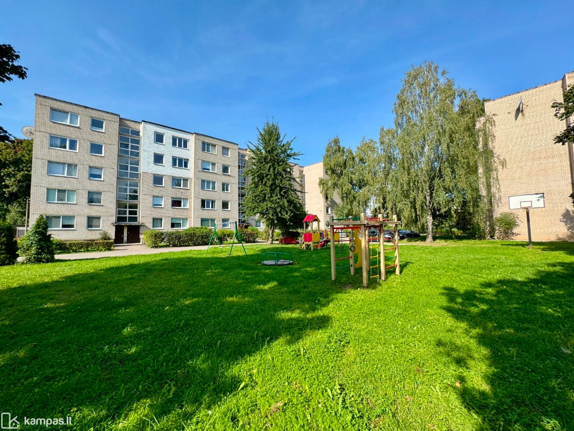 • Šalia daug žalios erdvės, kieme yra vaikų žaidimo aikštelė