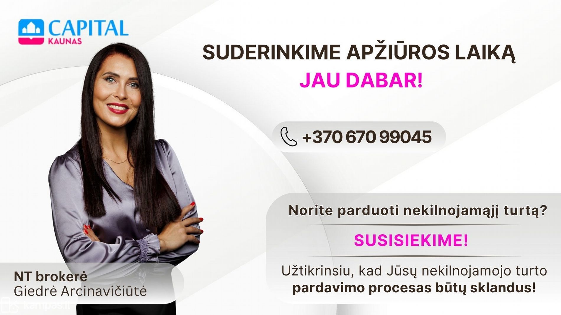 NT brokerė Giedrė Arcinavičiūtė, tel. Nr. +37067099045, el. p. [email protected]