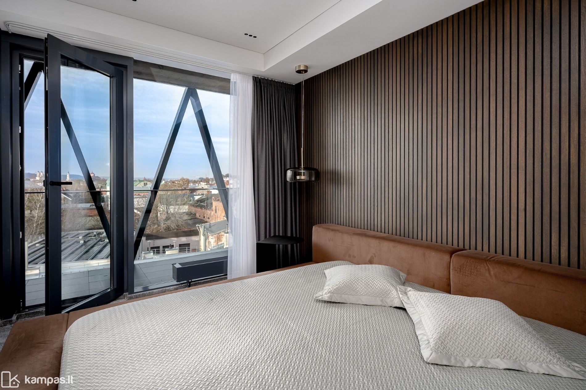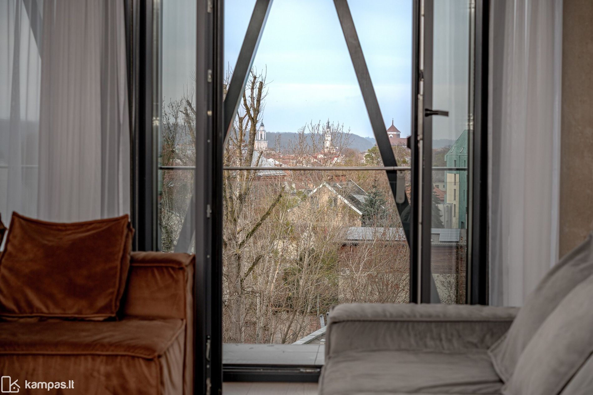 Panorama ir balkonas: vitrininiai langai ir erdvus balkonas per visą buto plotį leidžia mėgautis nepakartojamu senamiesčio vaizdu, taip pat – puikiu poilsio kampeliu vakarais;
