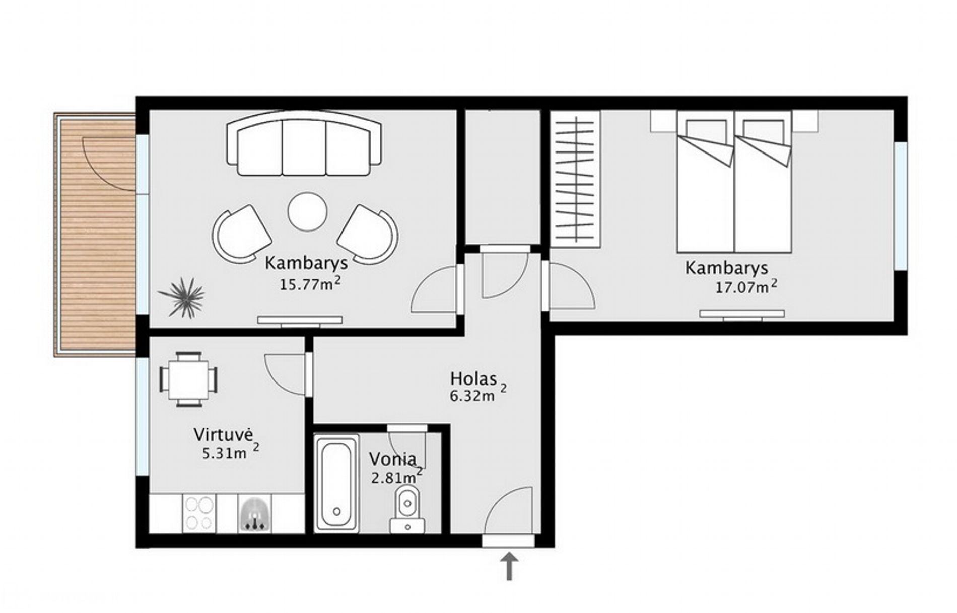 • Tvarkingas, parduodamas su baldais ir buitine technika;