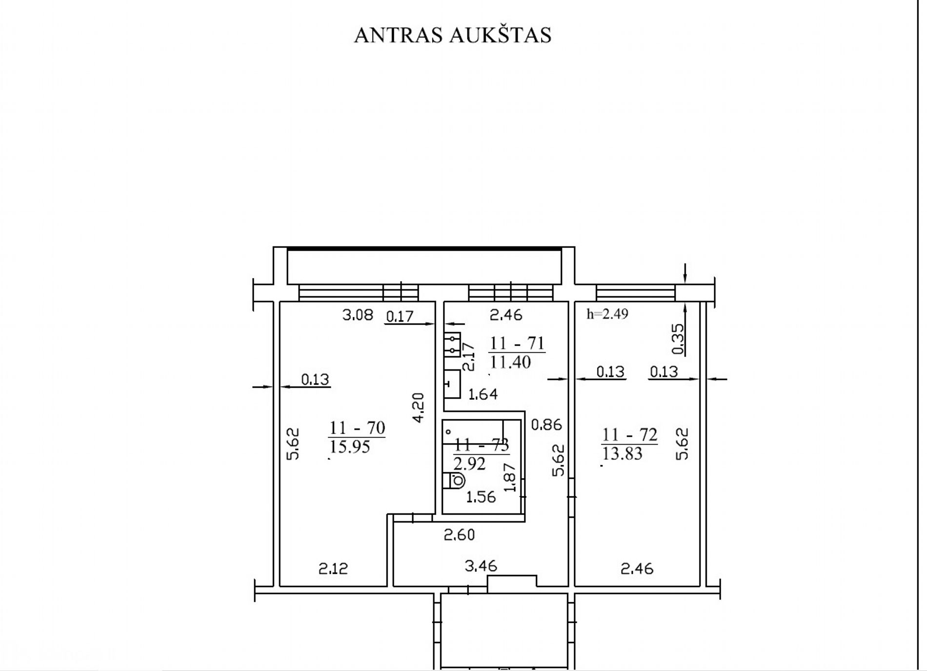 Kambarių skaičius – 2;