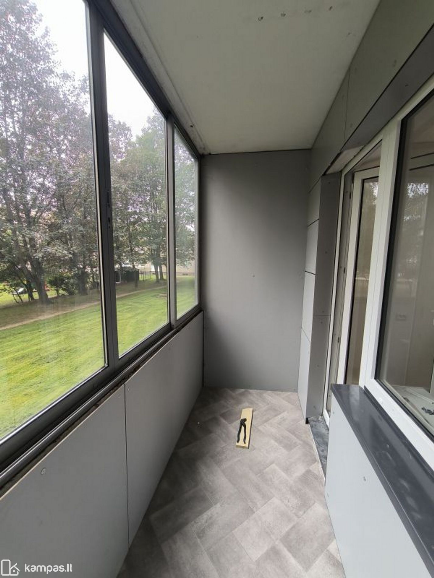 Langai orientuoti į skirtingas puses. Du įstiklinti ir atnaujinti balkonai.