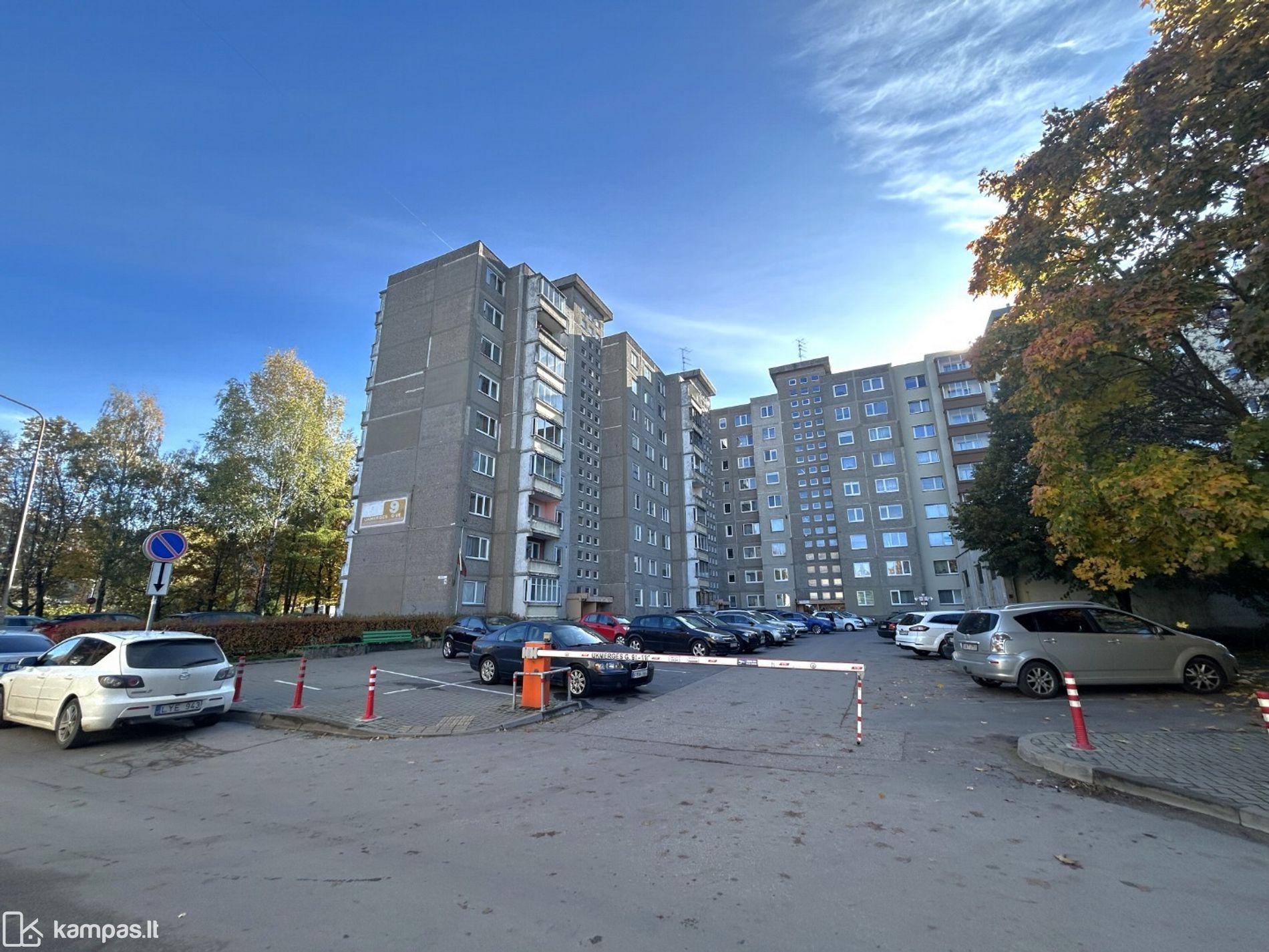 Kieme įrengtos dvi automobilių parkavimo aikštelės su įvažiavimo užtvaru.