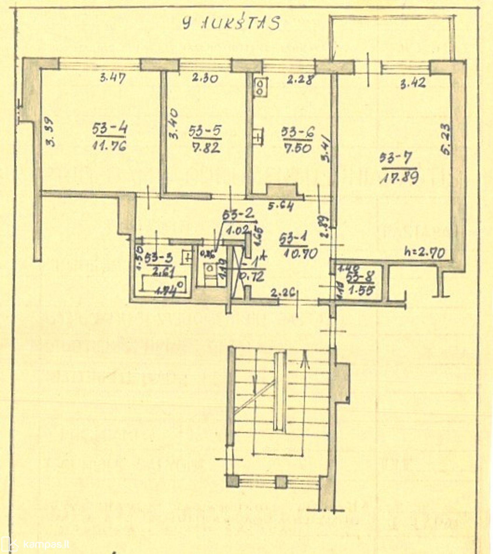 • Kambariai – 17,89 kv.m., 11,76 kv. m. ir 7,82 kv.m.;