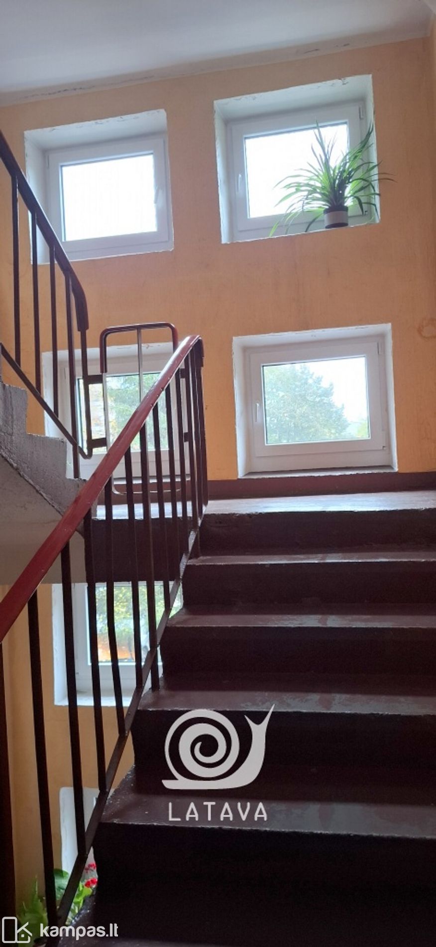 Rakinama, tvarkinga namo laiptinė. Butui priklauso rūsys.