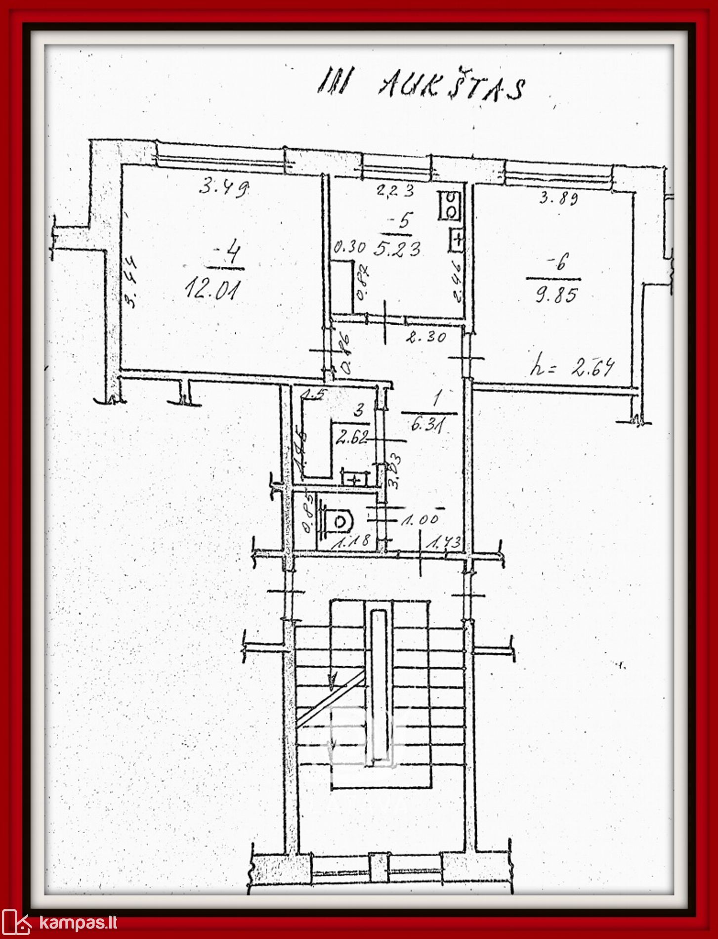 Bendras plotas 37 kv.m. 5 aukštų blokinio namo 3 aukštas.