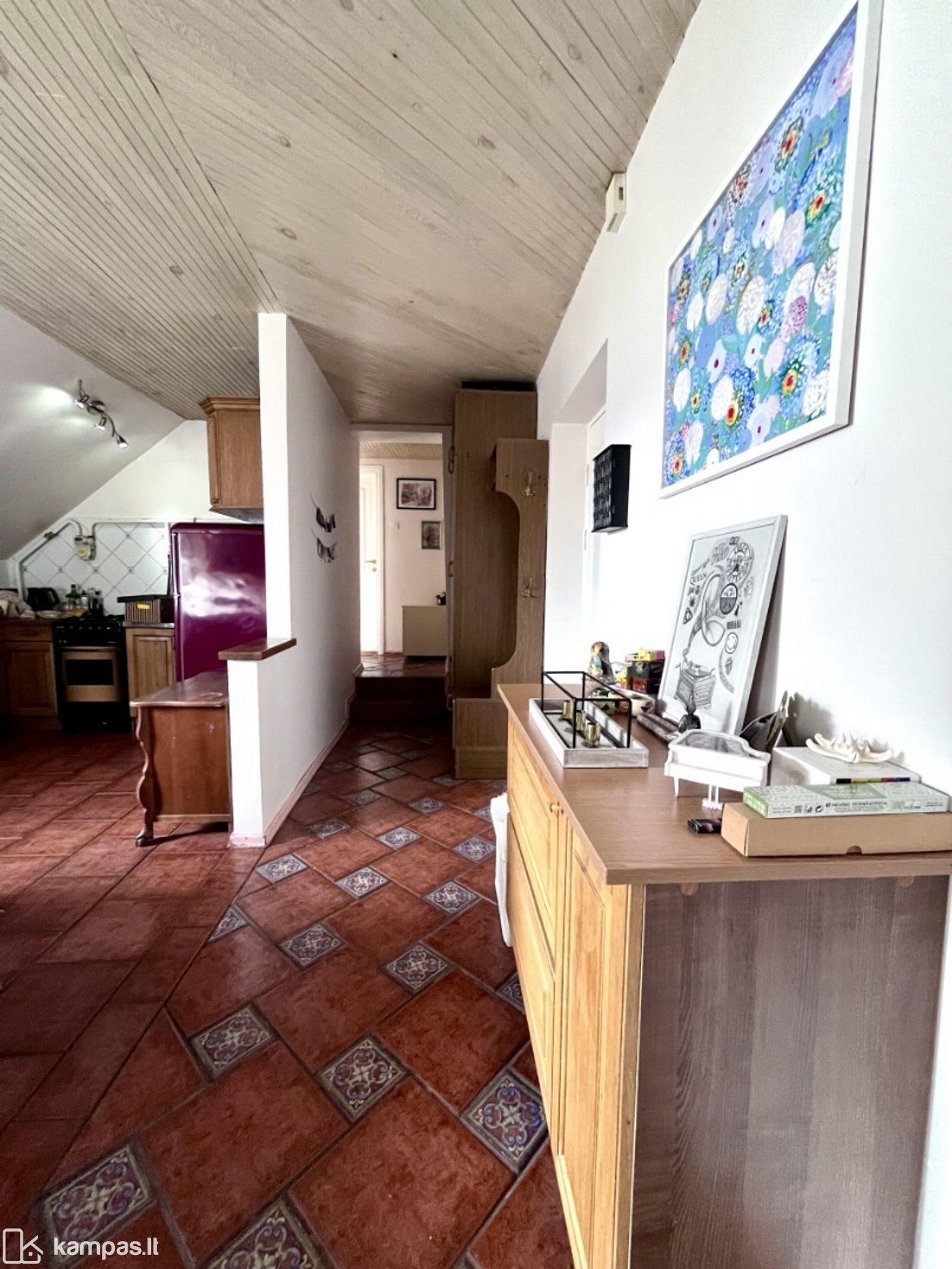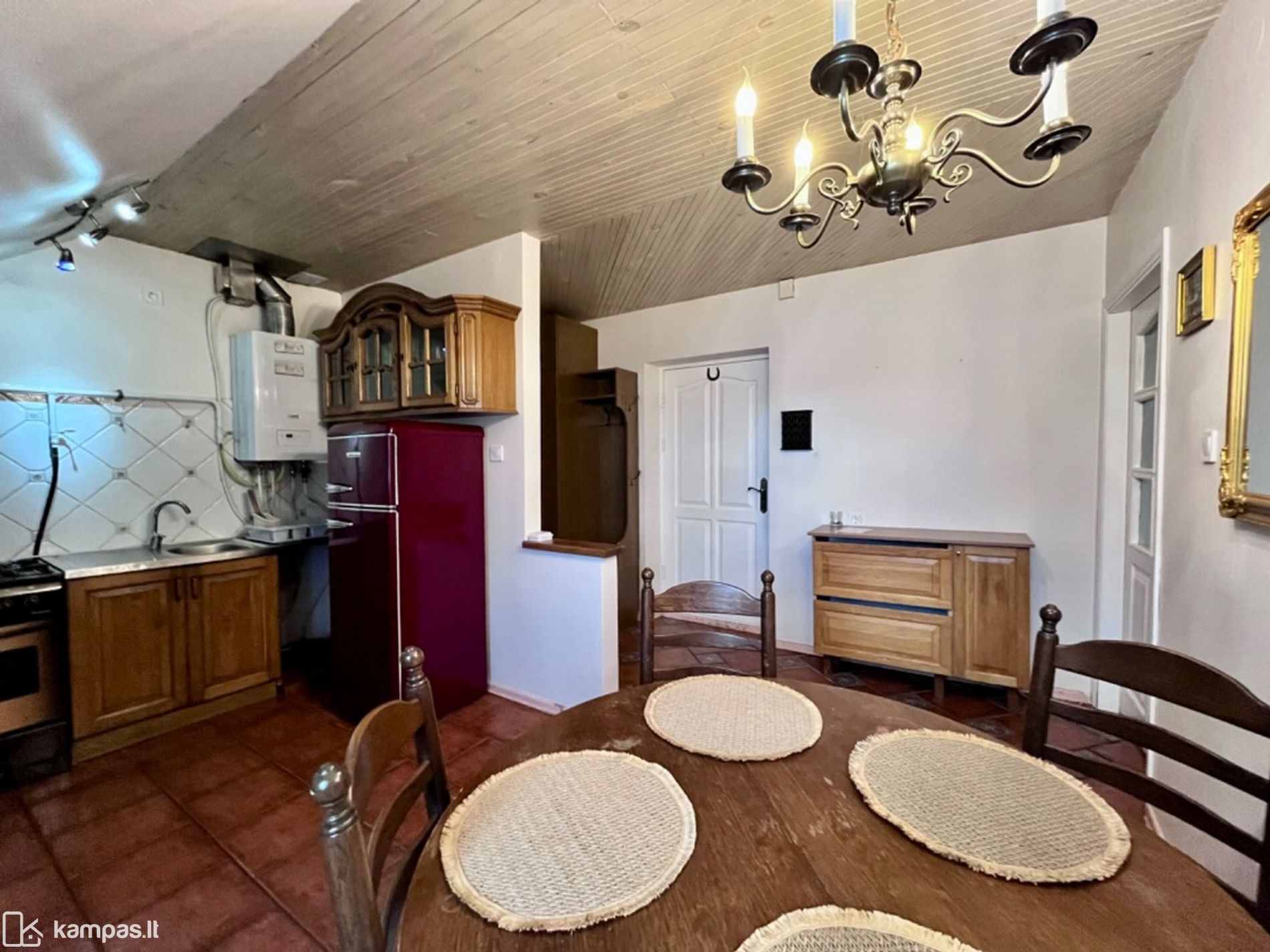 • Virtuvė turi savo atskirą erdvę, su valgomuoju stalu ir kėdėmis, antikvarine spintele, bei veliux langu, tad turėsite daug šiesos;