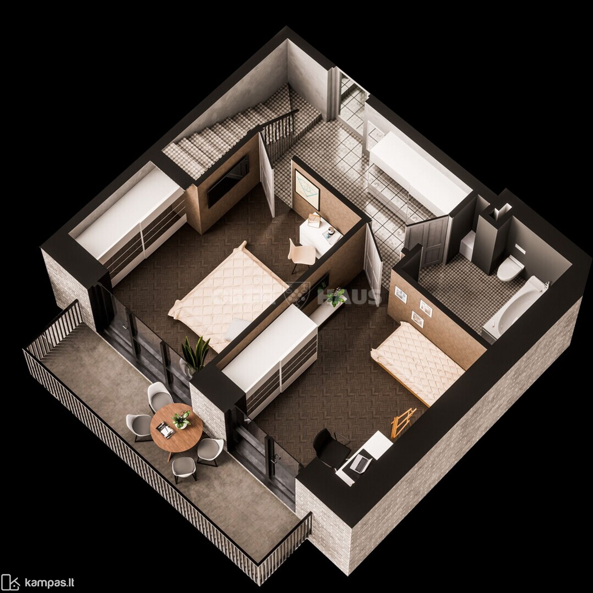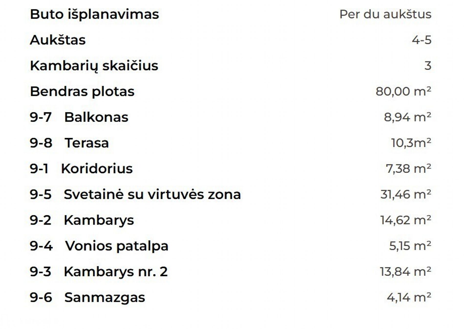 Parduodamas A++ 3 kamb. butas per du aukštus su terasa bei balkonu
