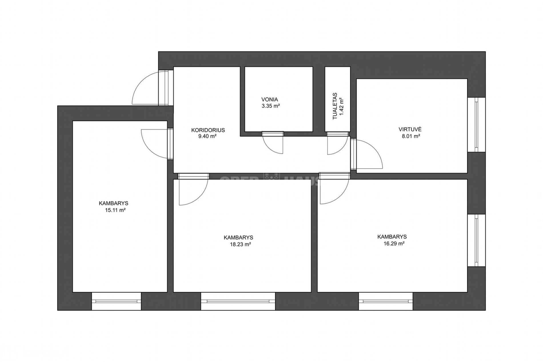 - Kambarių skaičius: 3;