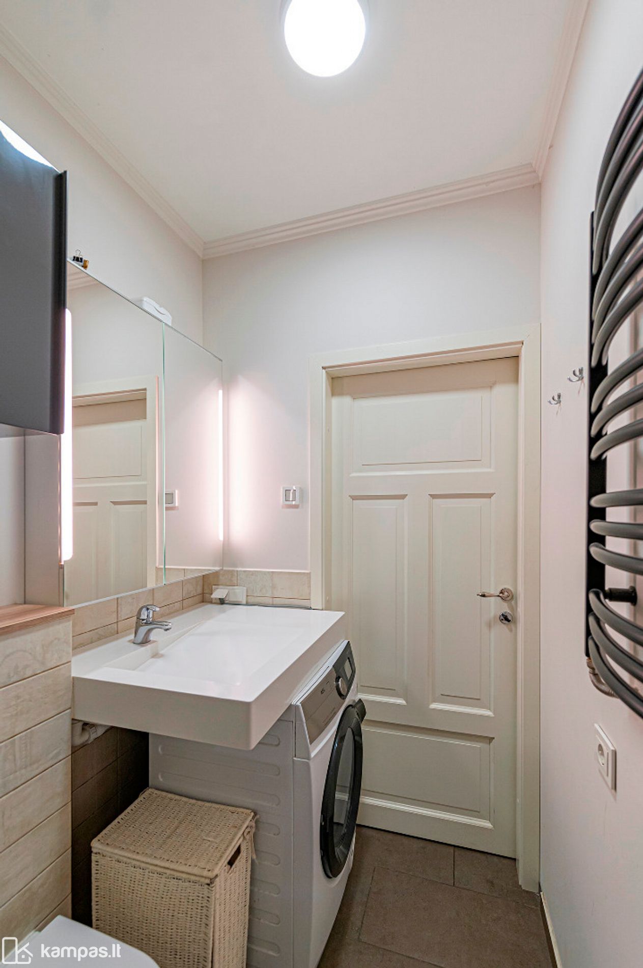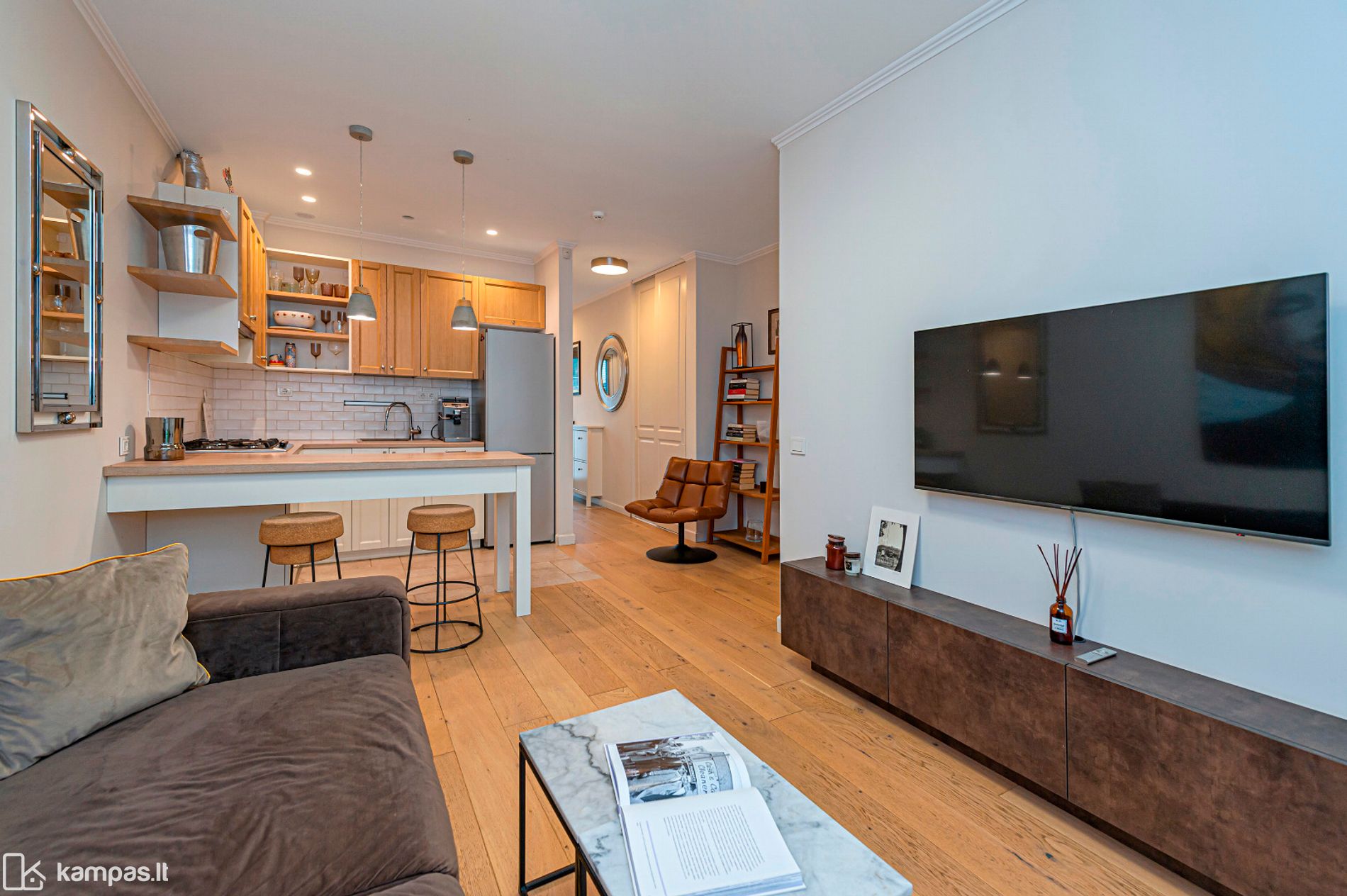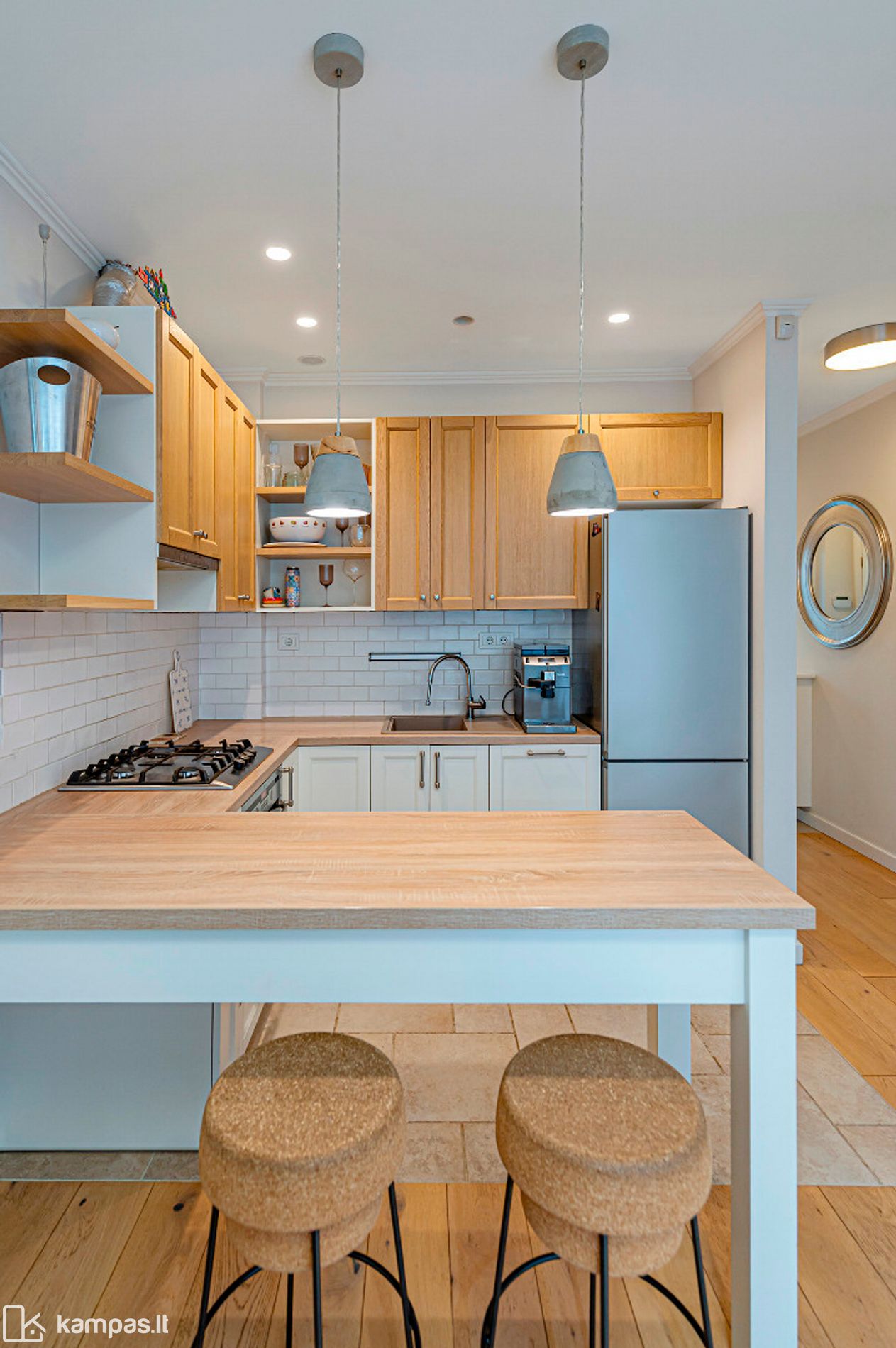 Stilingai įrengtas, butas parduodamas su kokybiškais baldais, vonios ir virtuvės buitine technika, 2 televizoriais. Bute yra pagalbinė patalpa su langu. Ji gali būti naudojama kaip darbo kambarys ar didelė drabužinė. Patalpoje telpa lova.