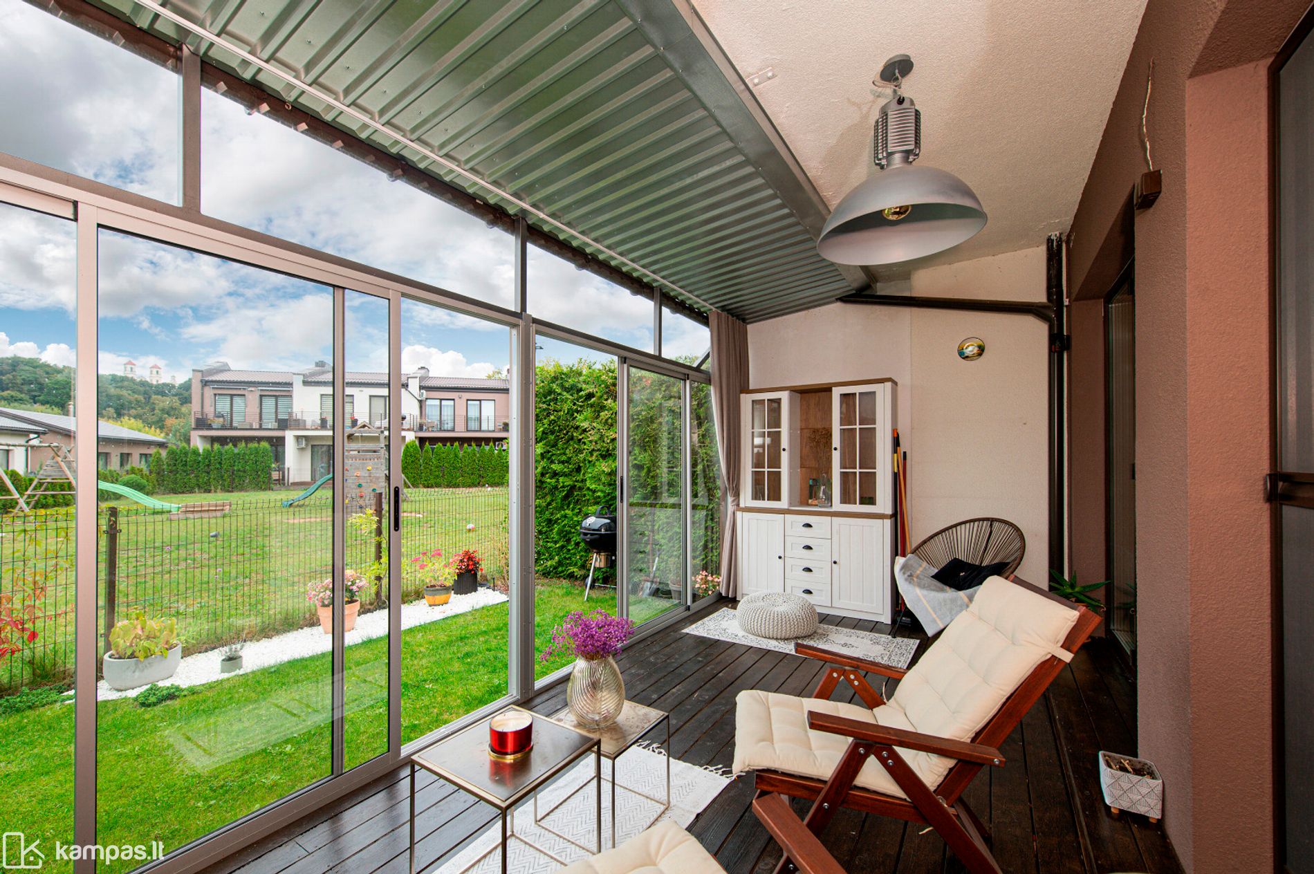- Kiemelyje erdvi, įstiklinta terasa su stogu
