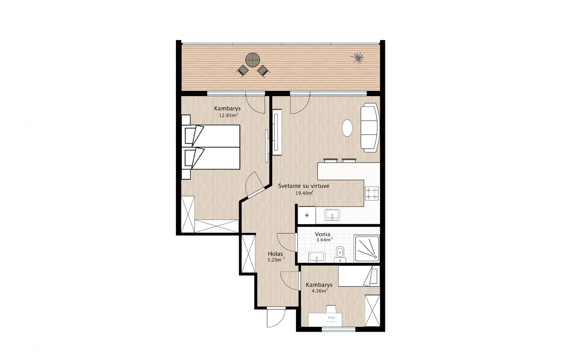 - Atskiras išėjimas į uždarą, tik šiam butui priklausantį kiemelį