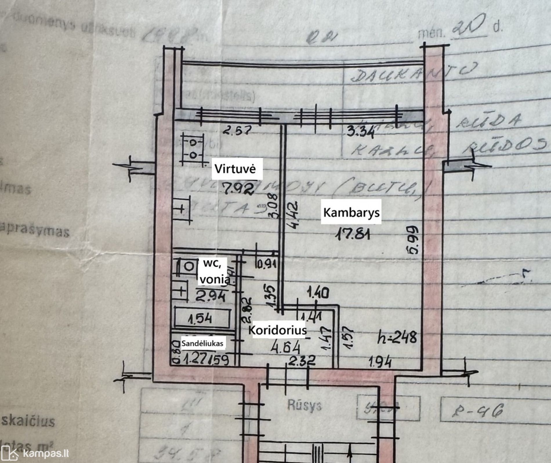 - Bendras plotas – 34.58 kv. m + balkonas;