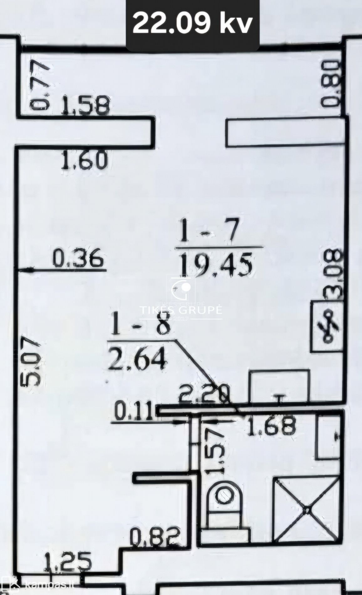 1️⃣ 1 kamb. – 22,09 kv. m – 61 000 €