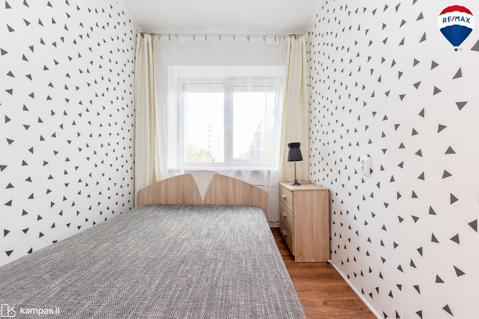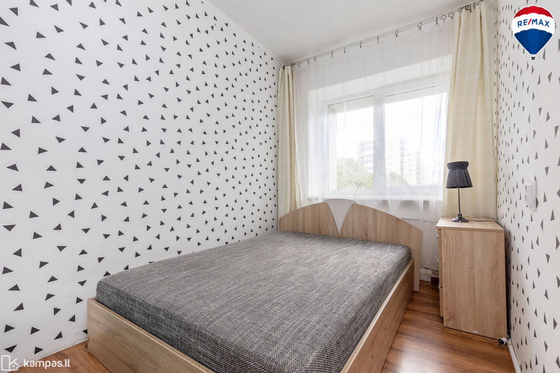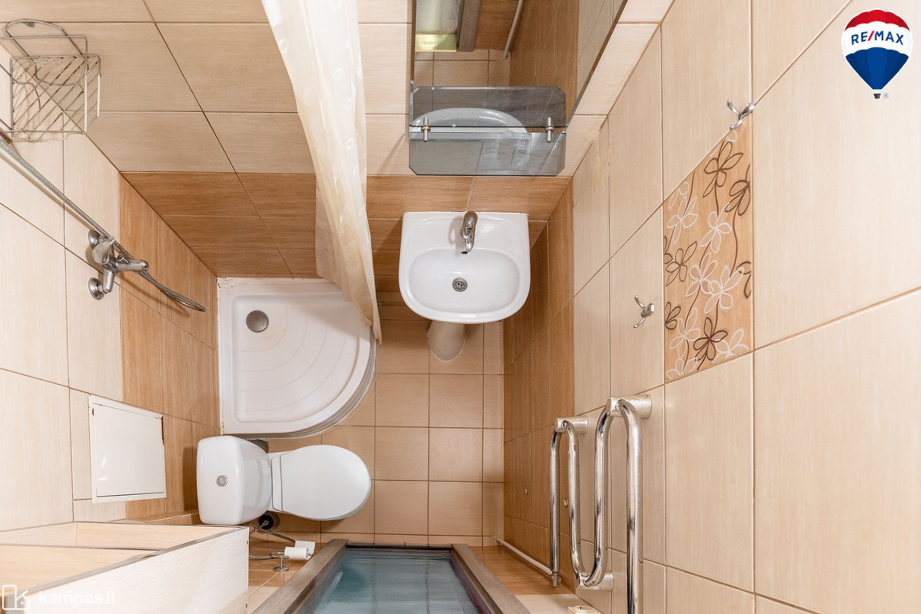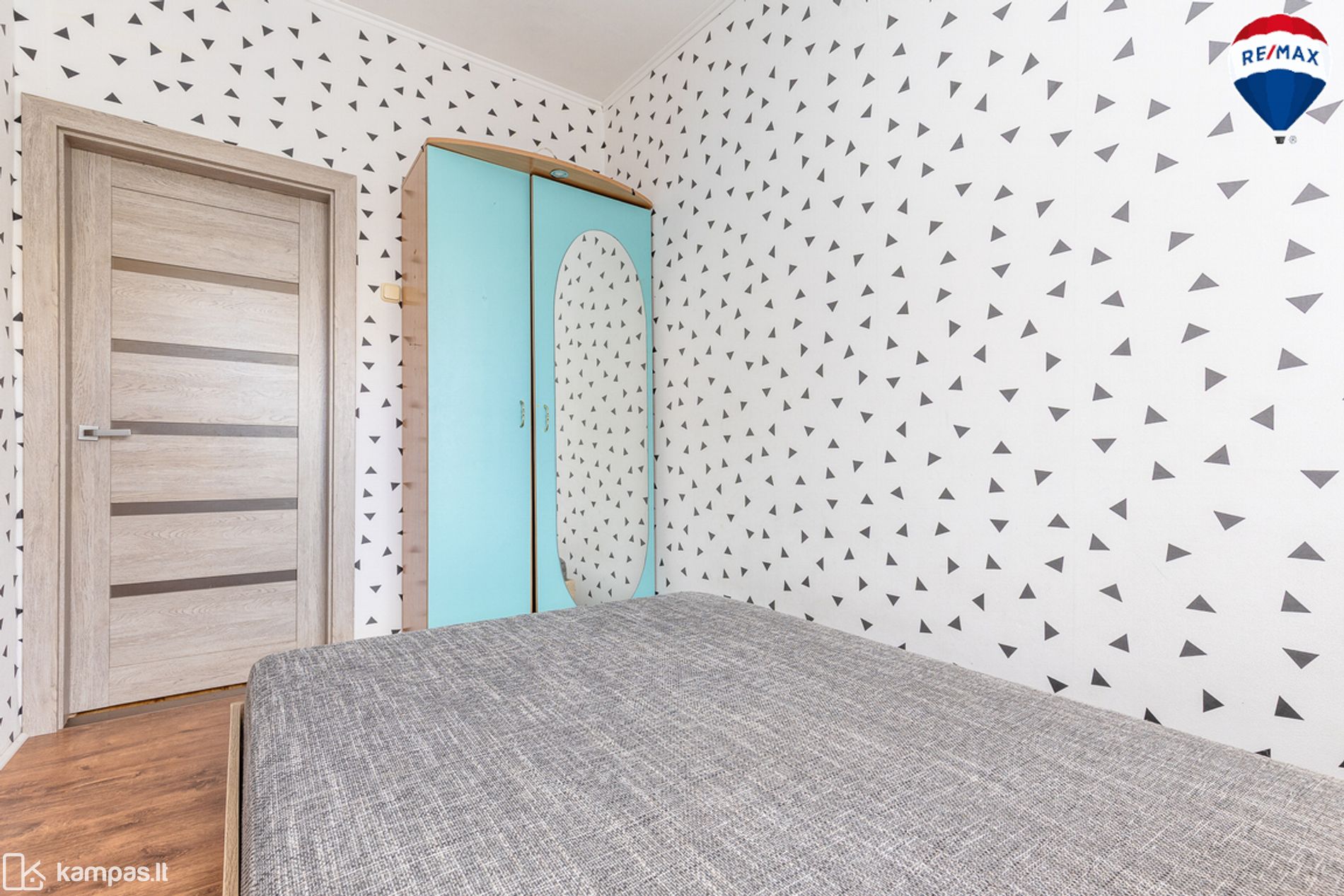 - Grindys – laminuota grindų danga, vonios kambaryje ir virtuvės zonoje – plytelės;