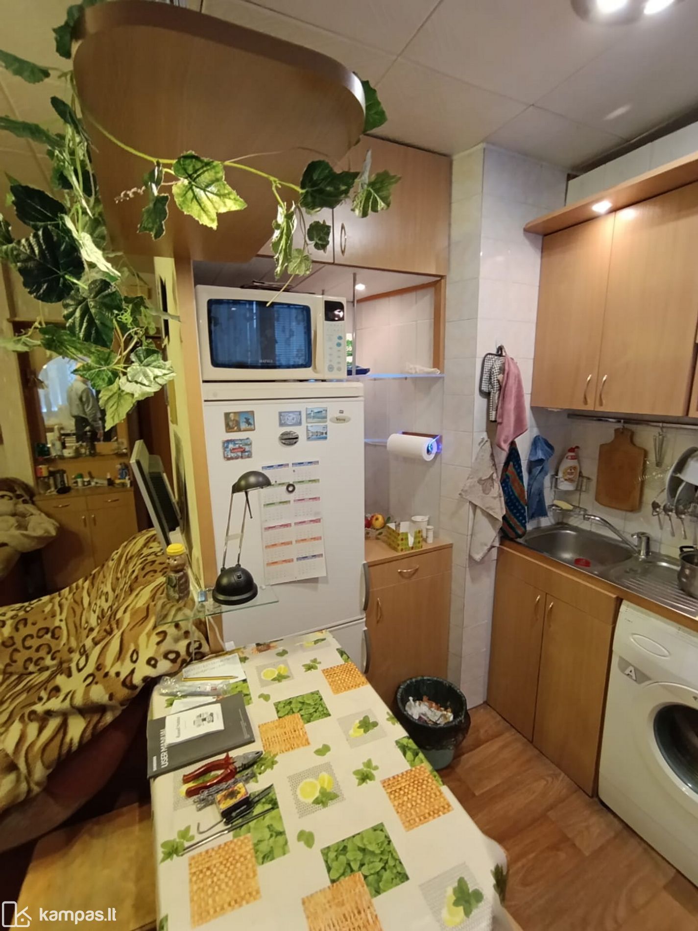- Erdvė suplanuota taip, kad telpa būtiniausi baldai ir daiktai