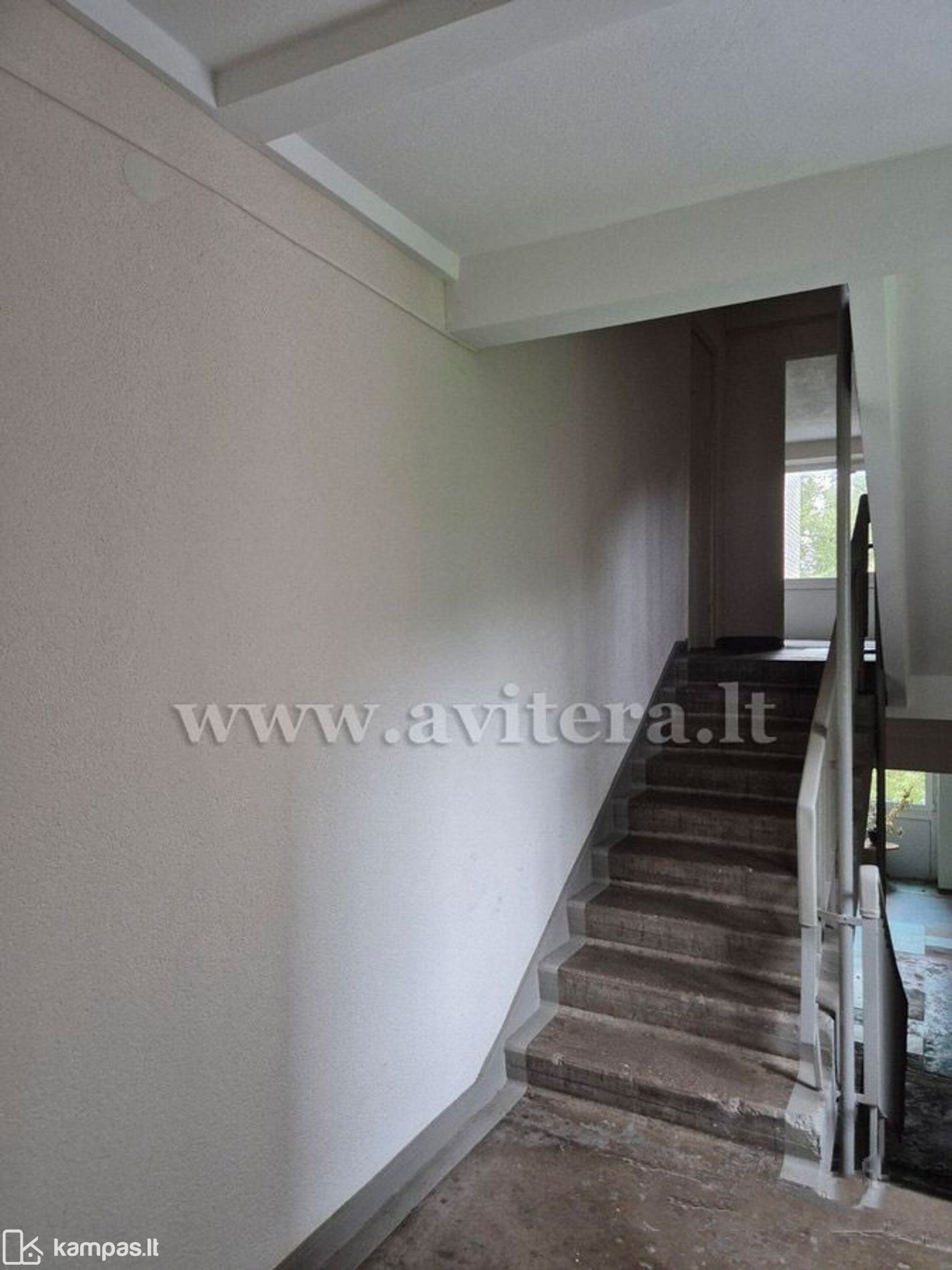 Sutvarkytos laiptinės sienos, langai bei lubos.