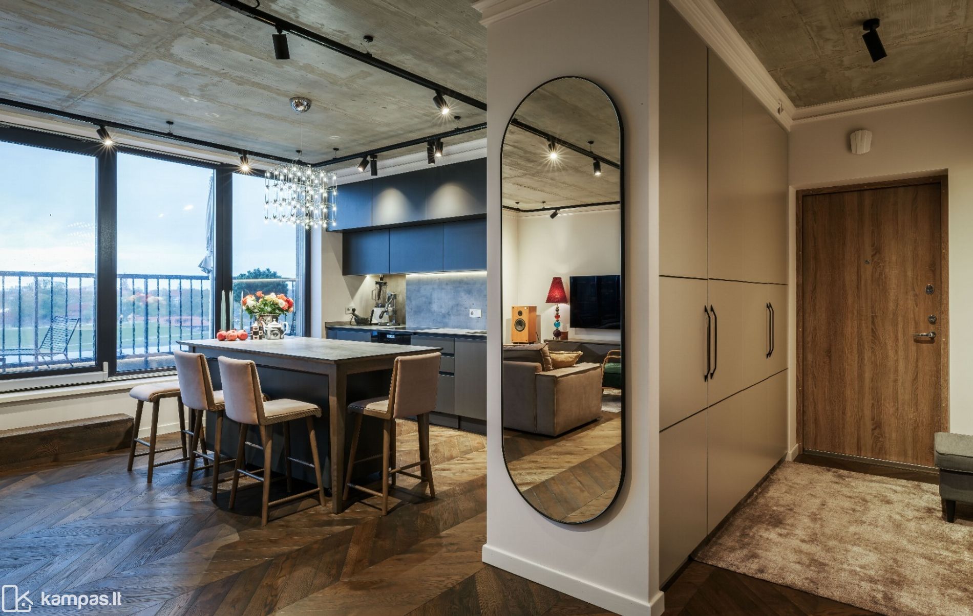 Šiuolaikiškai įrengti apartamentai kurti su profesionalaus dizainerio pagalba, naudojant tik aukščiausios kokybės medžiagas. Modernūs paveikslai, apgalvotos interjero detalės bei kruopščiai parinkti baldai kuria išskirtinę atmosferą namuose. Būstas pasižymi funkcionaliu išplanavimu: erdvi svetainė, sujungta su virtuvės ir valgomojo zona, jaukus miegamasis bei atskiras kambarys, kurį galėsite pritaikyti pagal savo poreikius – kaip vaikų kambarį, jaukią darbo erdvę ar poilsio zoną svečiams. Gyventojų patogumui – du vonios kambariai: vienas – su vonia, pasiekiamas tiesiai iš pagrindinio miegamojo, užtikrinantis visišką privatumą, kitas – WC su dušu, skirtas kasdieniam naudojimui ar svečiams. Bute įrengta erdvi drabužinė, leidžianti palaikyti nepriekaištingą tvarką namuose.