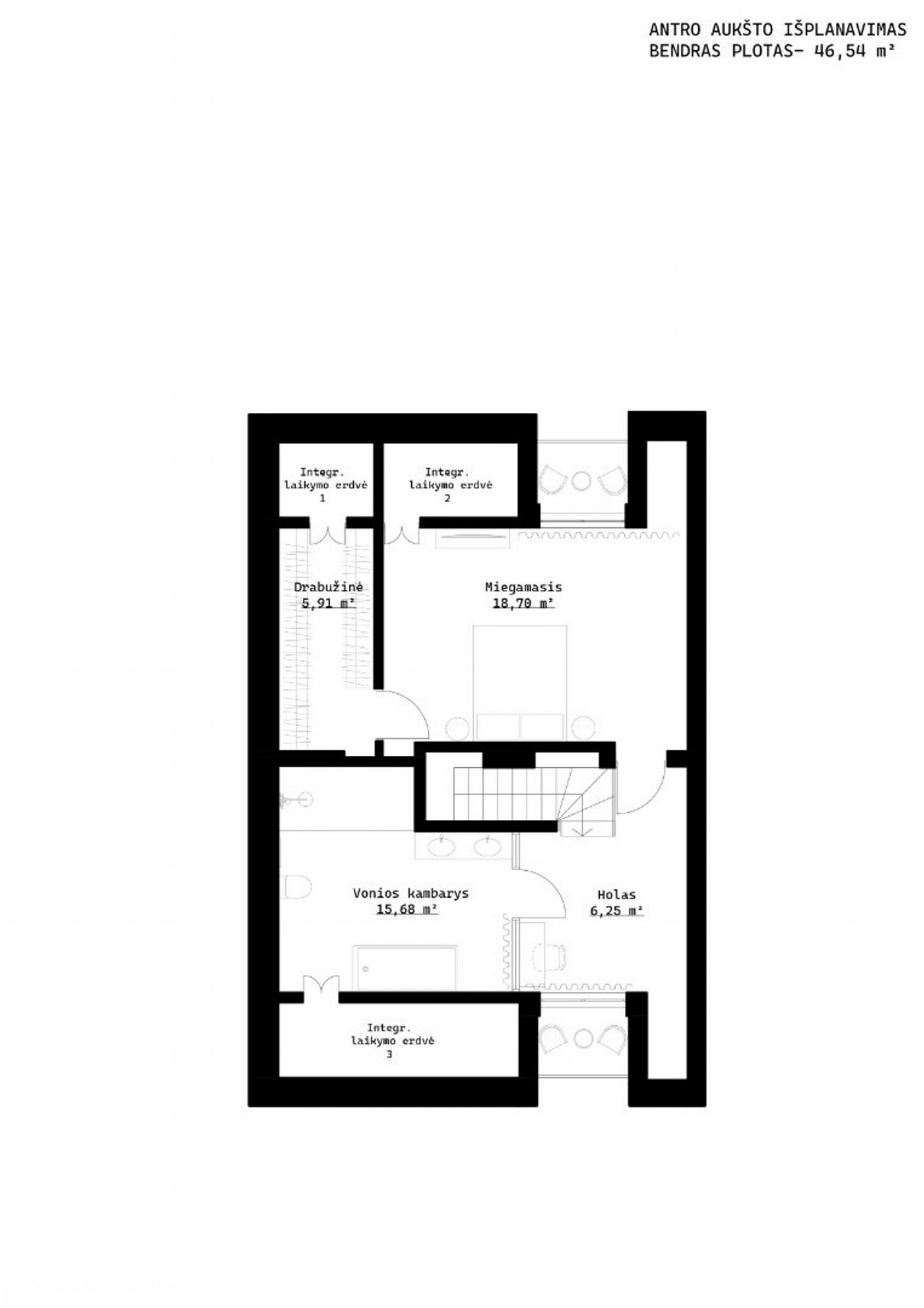 - 2 vonios kambariai, 2 drabužinės, techninė patalpa/sandėliukas;