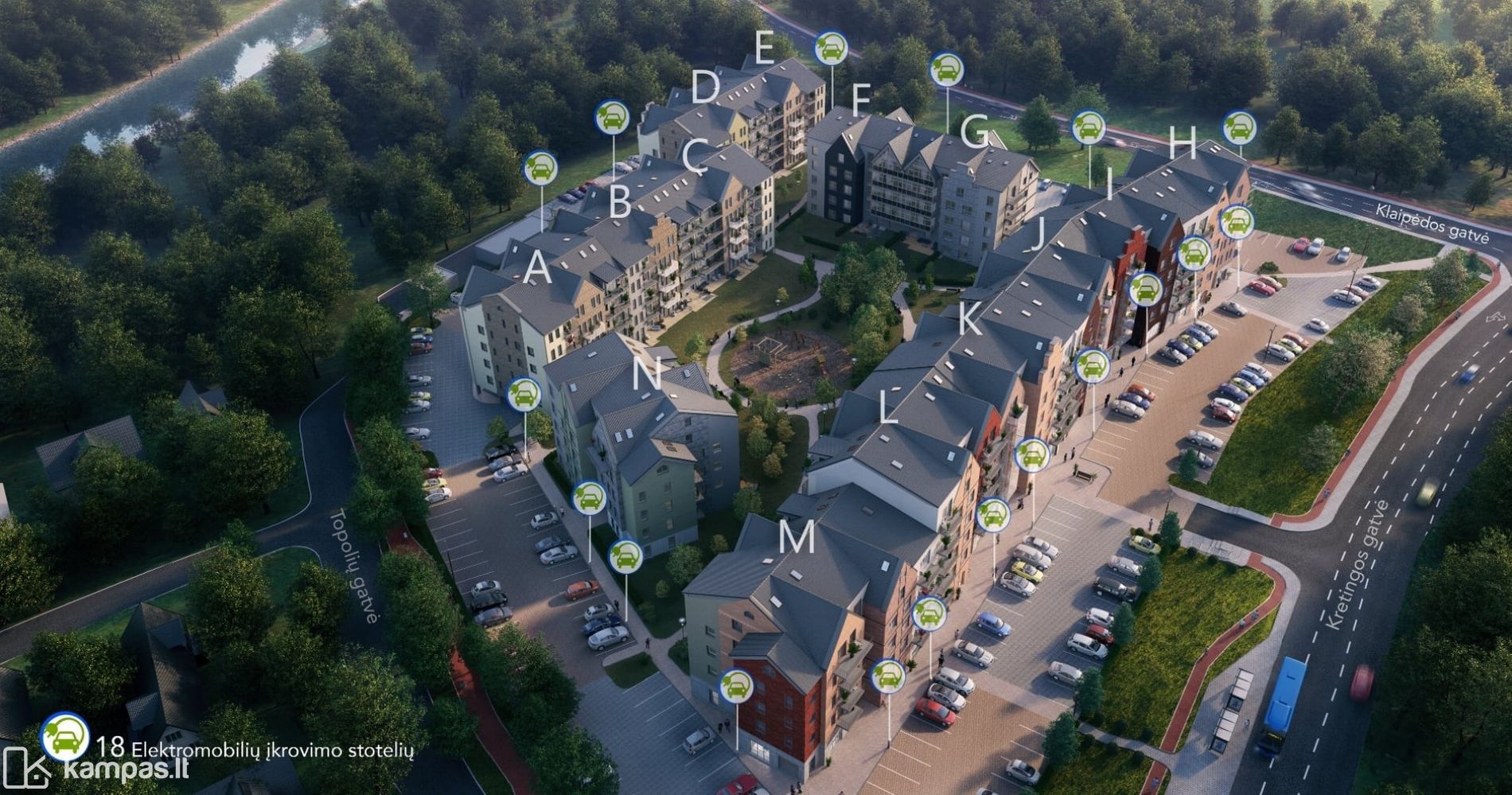___________________________________________________________ REZERVUOKITE JAU DABAR! Naujas 2-jų kambarių butas. Būsto langai orientuoti į rytų pusę. Plotas: 48,80 kv.m. ("B" korpusas). Statybų pabaiga: 2025 m. Projektas atitinka A+ Energetinę naudingumo klasę. Garso izoliacijos klasė C. Namai - mūriniai. Langai - plastikiniai 2-jų kamerų, 3-jų stiklų paketais su selektyviniu stiklu. ŠILDYMAS: kolektorinis, su individualia apskaita kiekvienam butui (radiatoriai su termostatais). Kiekviename name - LIFTAI („Schindler“). DALINĖ APDAILA: Virtuvės zonoje įrengti du ventiliacijos kanalai; - išvedžiota elektra (sumontuotos rozetės, jungikliai); - išvedžioti santechnikos įvadai; - sumontuotos pertvaros; - sienos: tarpbutinės sienos mūrinės, tinkuotos, vidinės butų pertvaros – g/k. - grindys: butuose įrengtas betoninis išlyginamasis pagrindas ant garsą izoliuojančios plokštės. Kiekviename bute sumontuotas silpnų srovių tinklų (interneto) paskirstymo skydelis. KOMUNIKACIJOS: miesto - elektra, vandentiekis, kanalizacija. Buto durys: šarvo tipo, su „akute“, rakinamos dviem spynomis. PARKAVIMAS: Yra galimybė įsigyti atžeminę parkavimo vietą (+6600 Eur). Prie kiekvieno namo bus įrengta elektromobilių įkrovimo stotelės. Iš viso - 18 elektromobilių įkrovimo stotelių. APLINKA: Šalia gyvenamųjų namų bus įrengta vaikų žaidimo aikštelė ir aktyvaus poilsio zona. Jaukumo teiks pasivaikščiojimo ir dviračio takai, želdiniai, pilnai sutvarkyta aplinka. Puiki vieta praleisti laiką gamtoje niekur nevažiuojant, šalia nuosavų namų. TRANSPORTAS: Šalia kvartalo yra įrengtos viešojo transporto „Kino Studija“ (9, 17, 23) ir „Ligoninės“ (17, 31, 15B, 32,23) stotelės. LOKACIJA: netoliese Botanikos sodas (250m), prekybos centras "IKI" (170m), "RIMI" (350m), „NORFA“(900m), Klaipėdos universitetinė ligoninė (450m), Klaipėdos jūrininkų ligoninė (450m), statoma bendrojo ugdymo mokykla. Dviračių takas nuo kvartalo driekiasi per Girulių girią iki jūros. Atstumas iki jūros - 3,3 km. Šiais takais galima pasiekti Girulių ir Melnragės paplūdimius, nuvykti į Karklės gyvenvietę ar Palangos miestą.