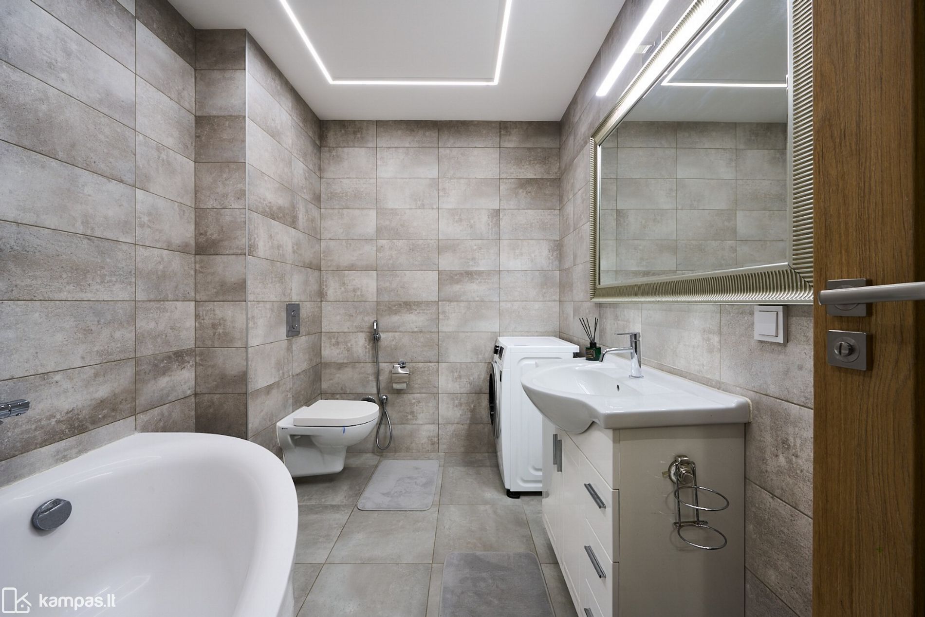 Vonios kambaryje – vonia, wc, skalbimo mašina bei šildomos grindys su reguliavimu, suteikiančios komforto šaltuoju sezonu.
