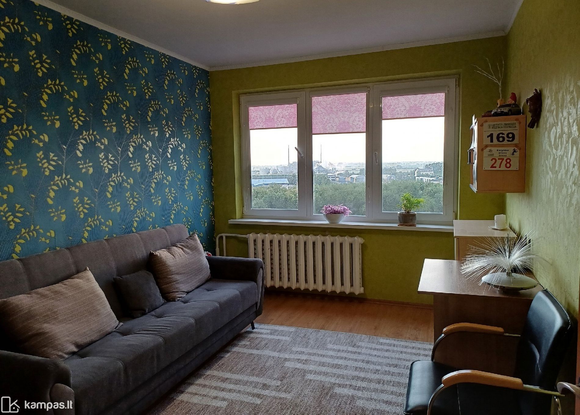 Parduodamas erdvus ir šviesus3 kambarių butasdevintame aukšte (9/9). Butas patogaus išplanavimo - yra du balkonai, vienas iš jųįstiklintas.