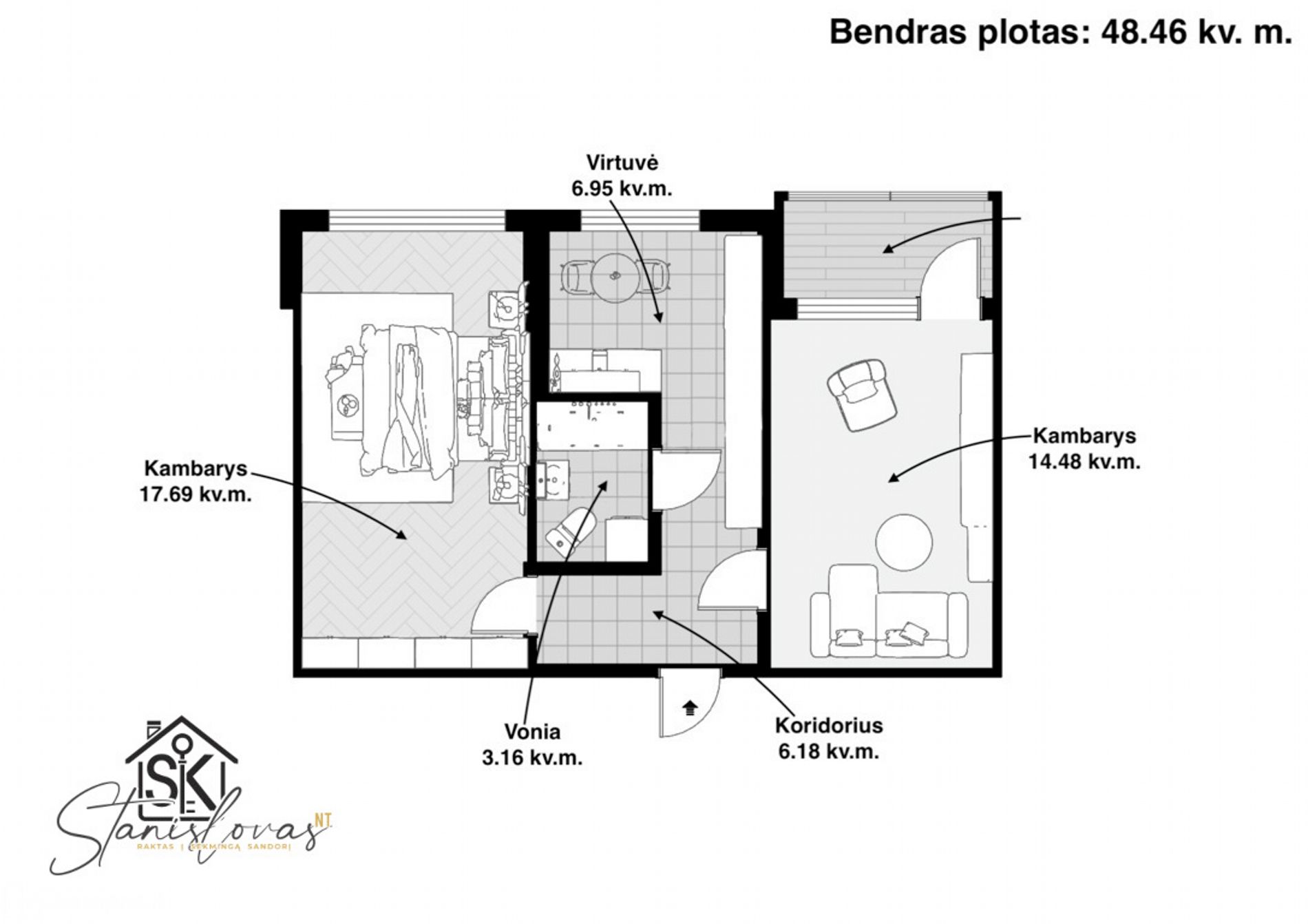 • Įstiklintas balkonas – papildoma erdvė poilsiui ar augalams;