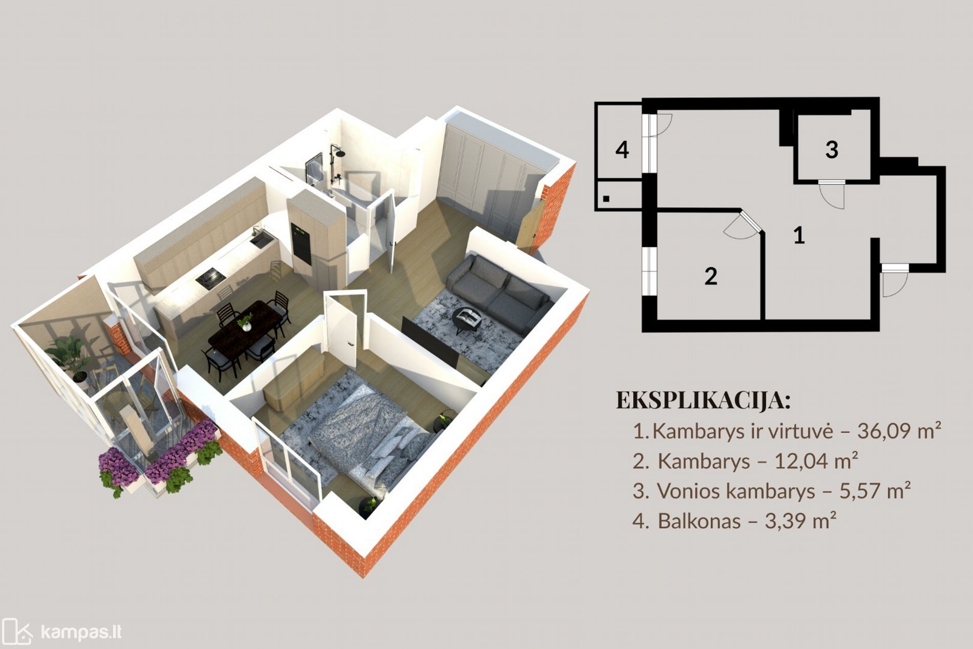 - Parduodamas su minkštaisiais baldais, korpusiniais baldais, buitine technika;