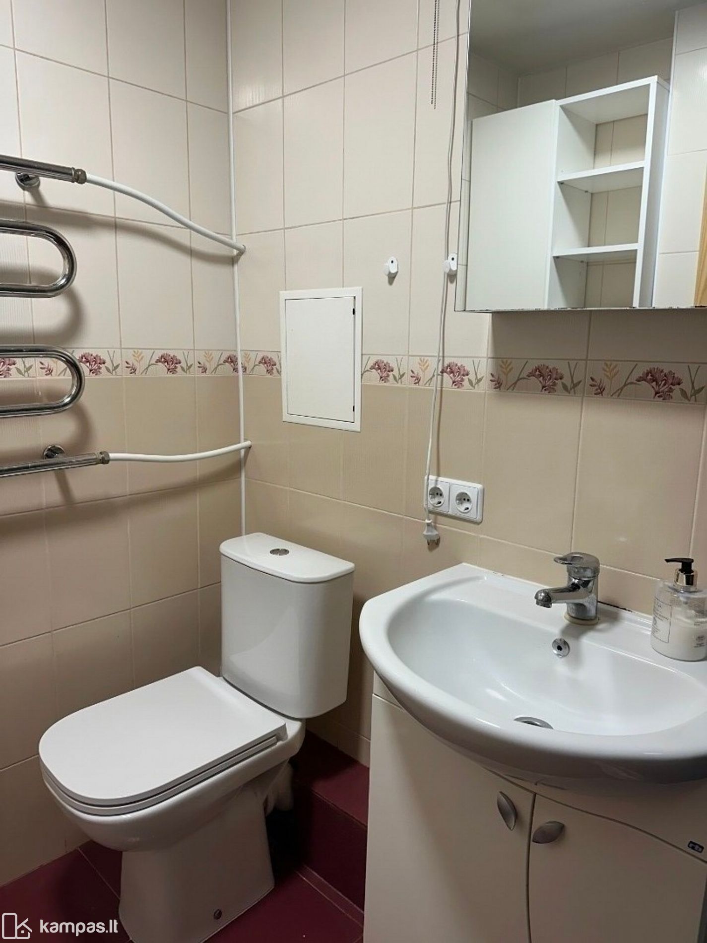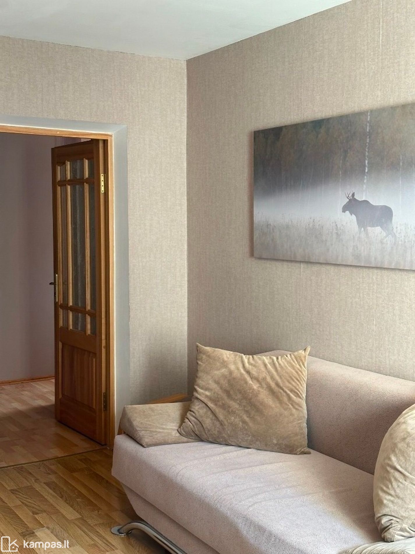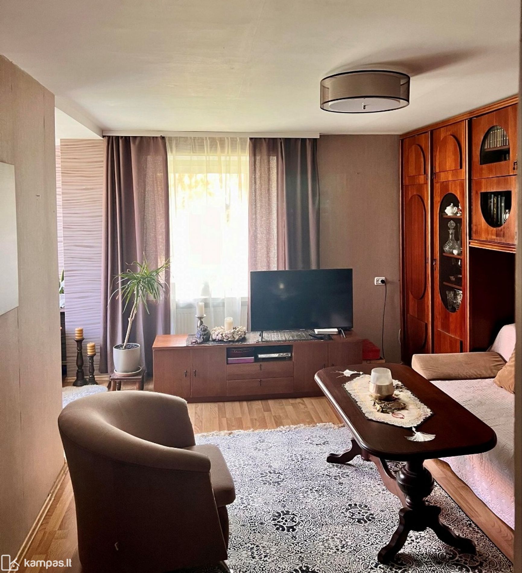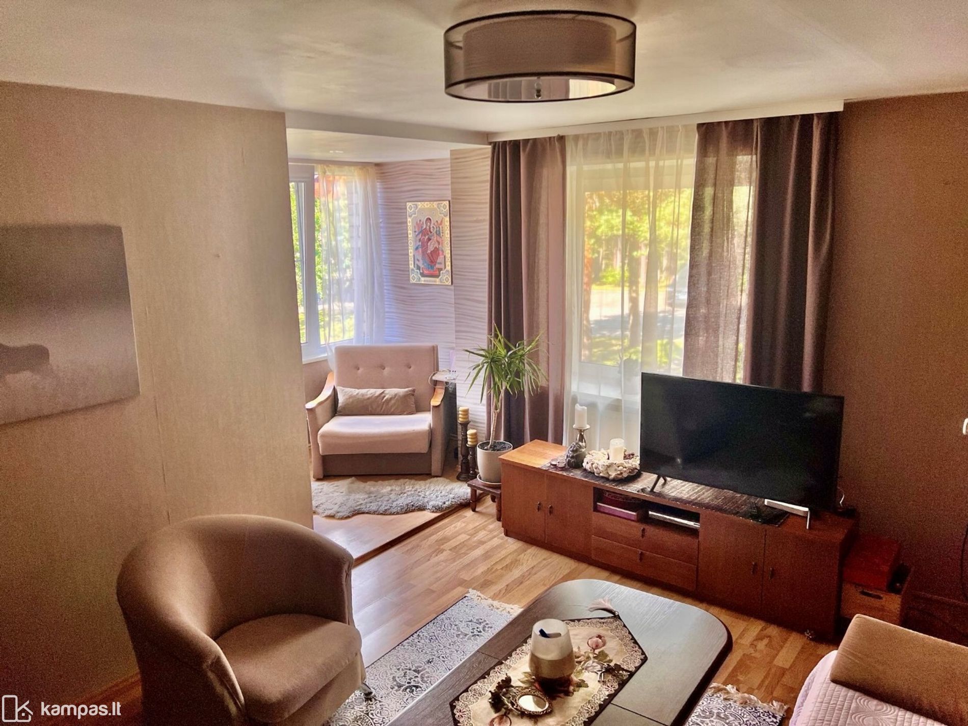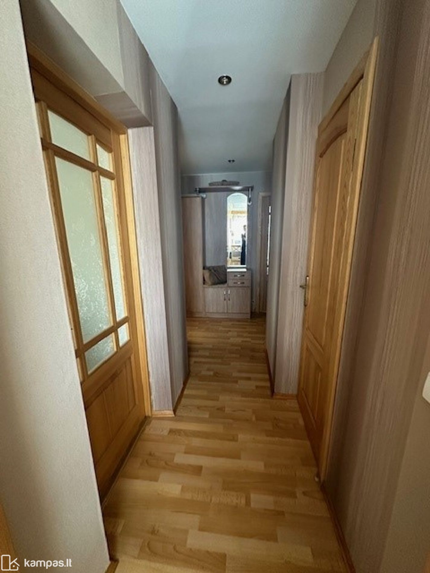 3 kambariai: erdvi svetainė, 2 miegamieji, virtuvė, holas ir vonios kambarys.