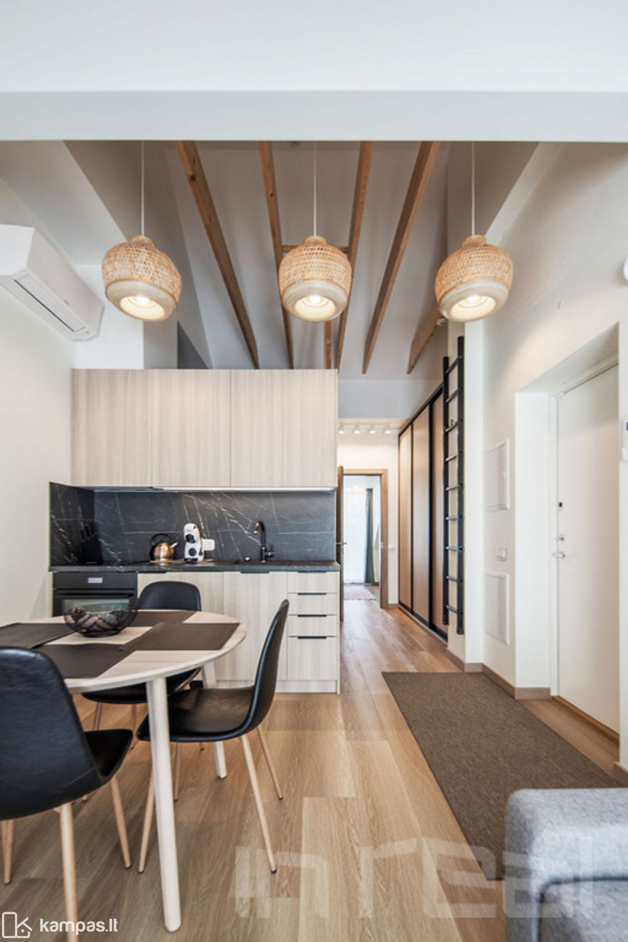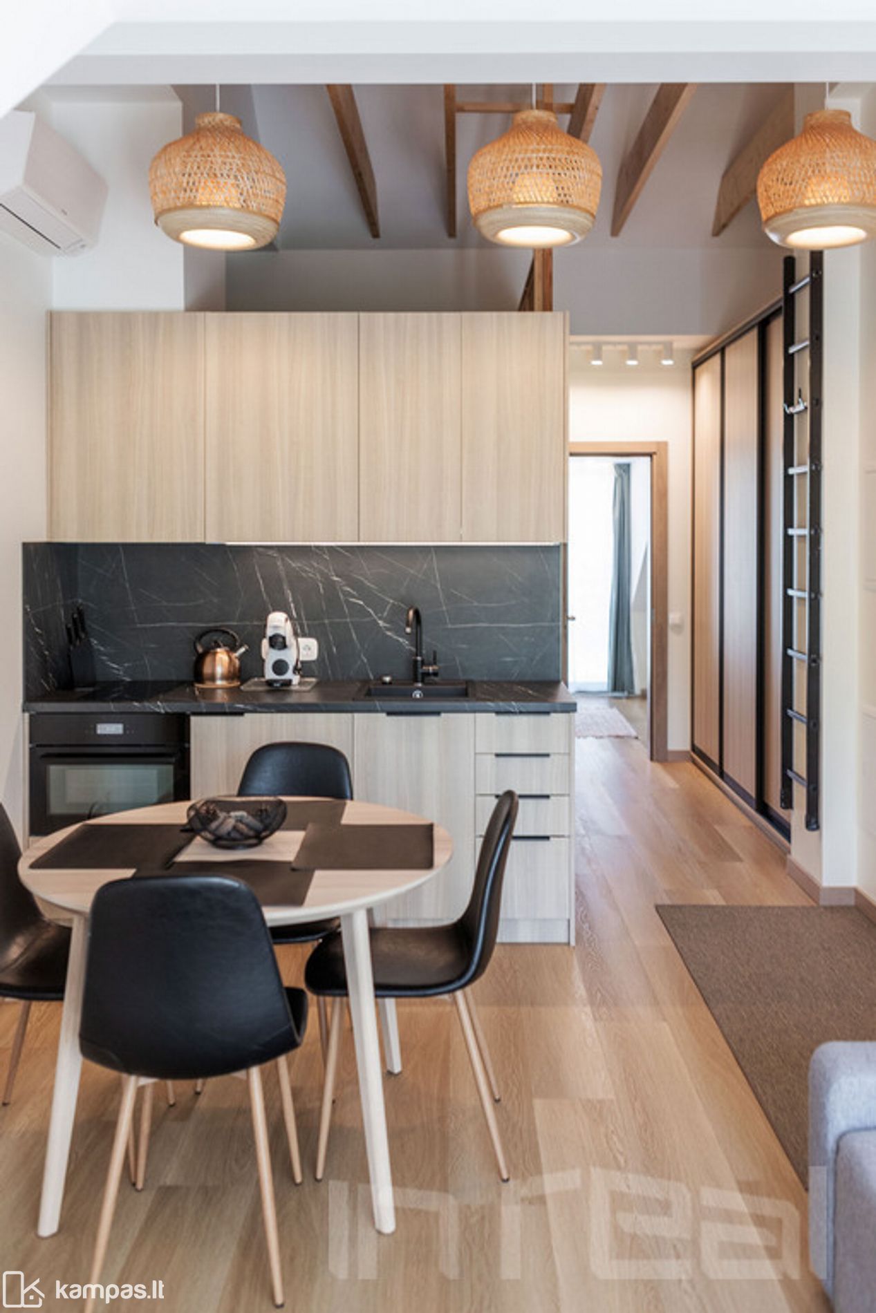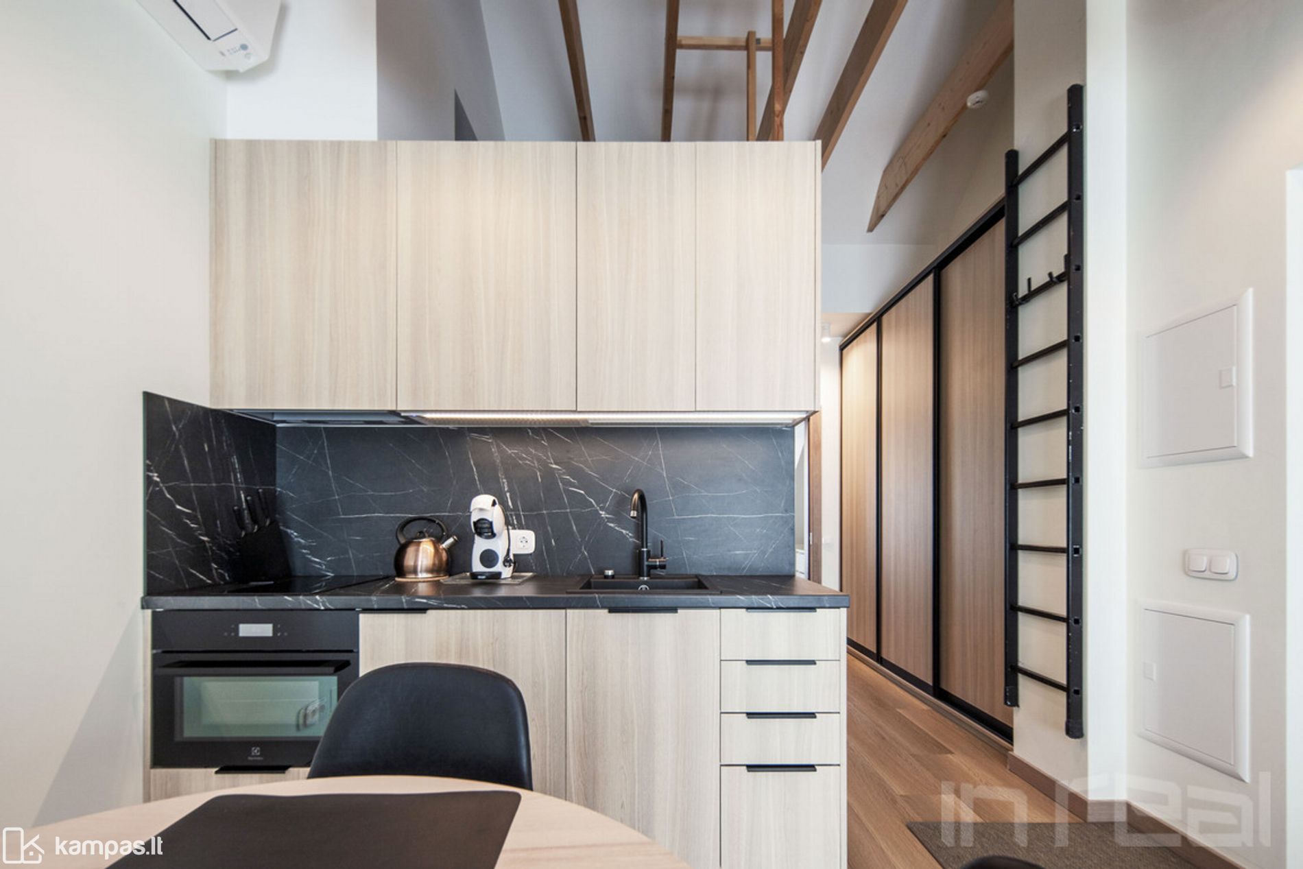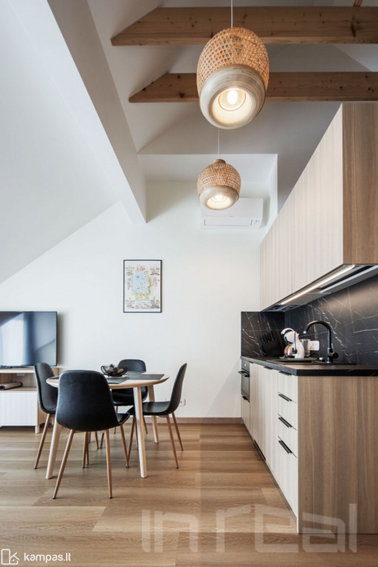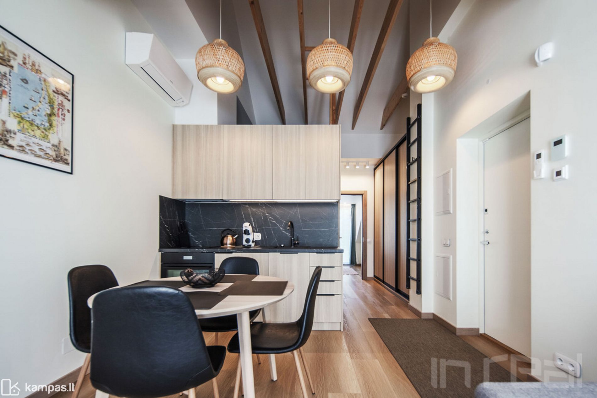 * Jaukus, nestandartinių erdvių butas, aukštomis lubomis, langai orientuoti į dvi puses;