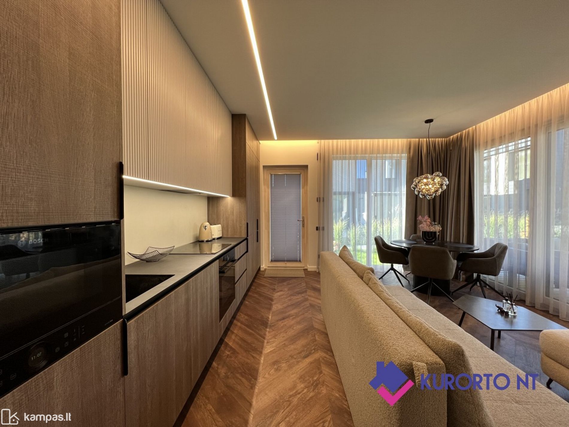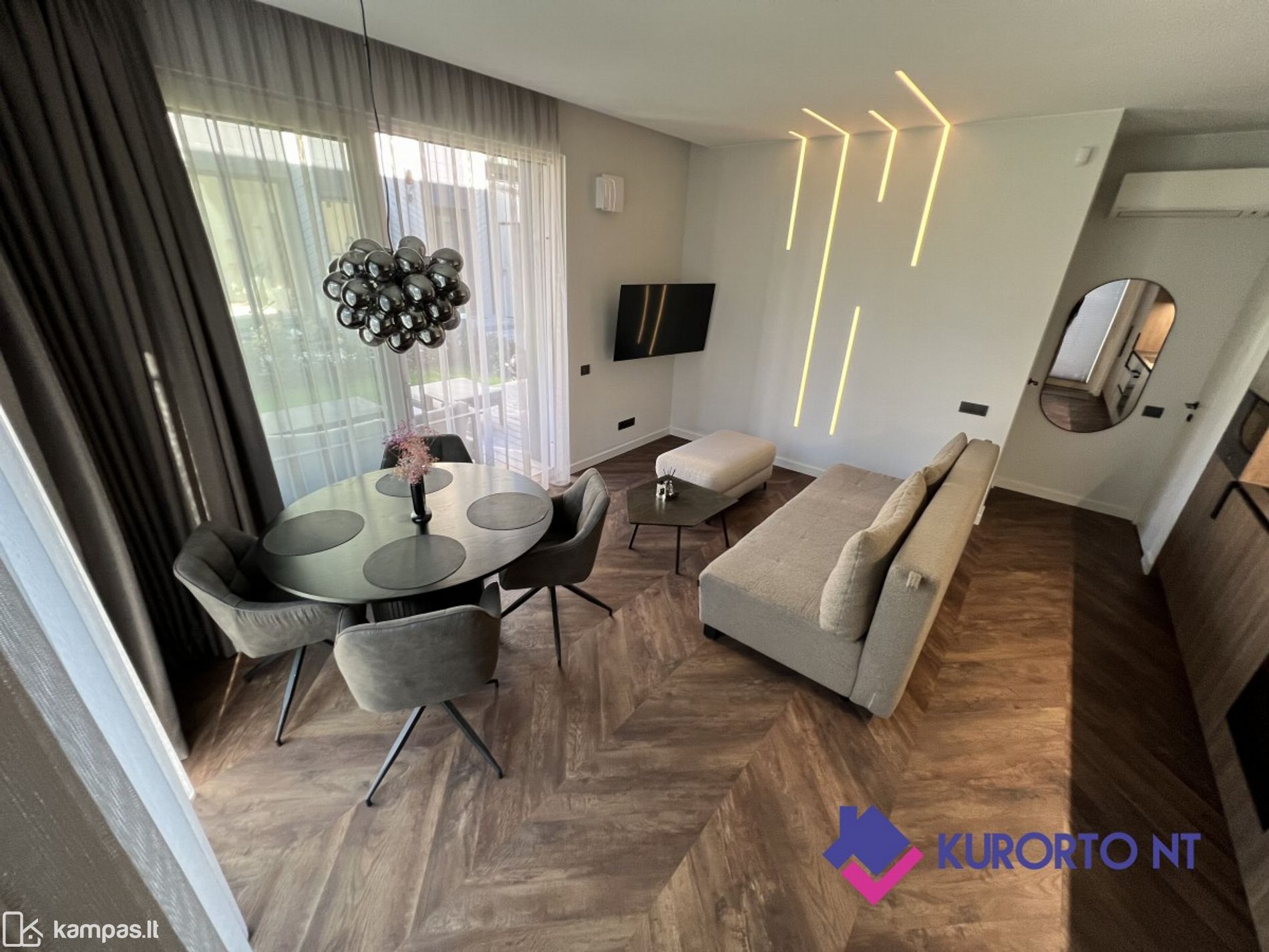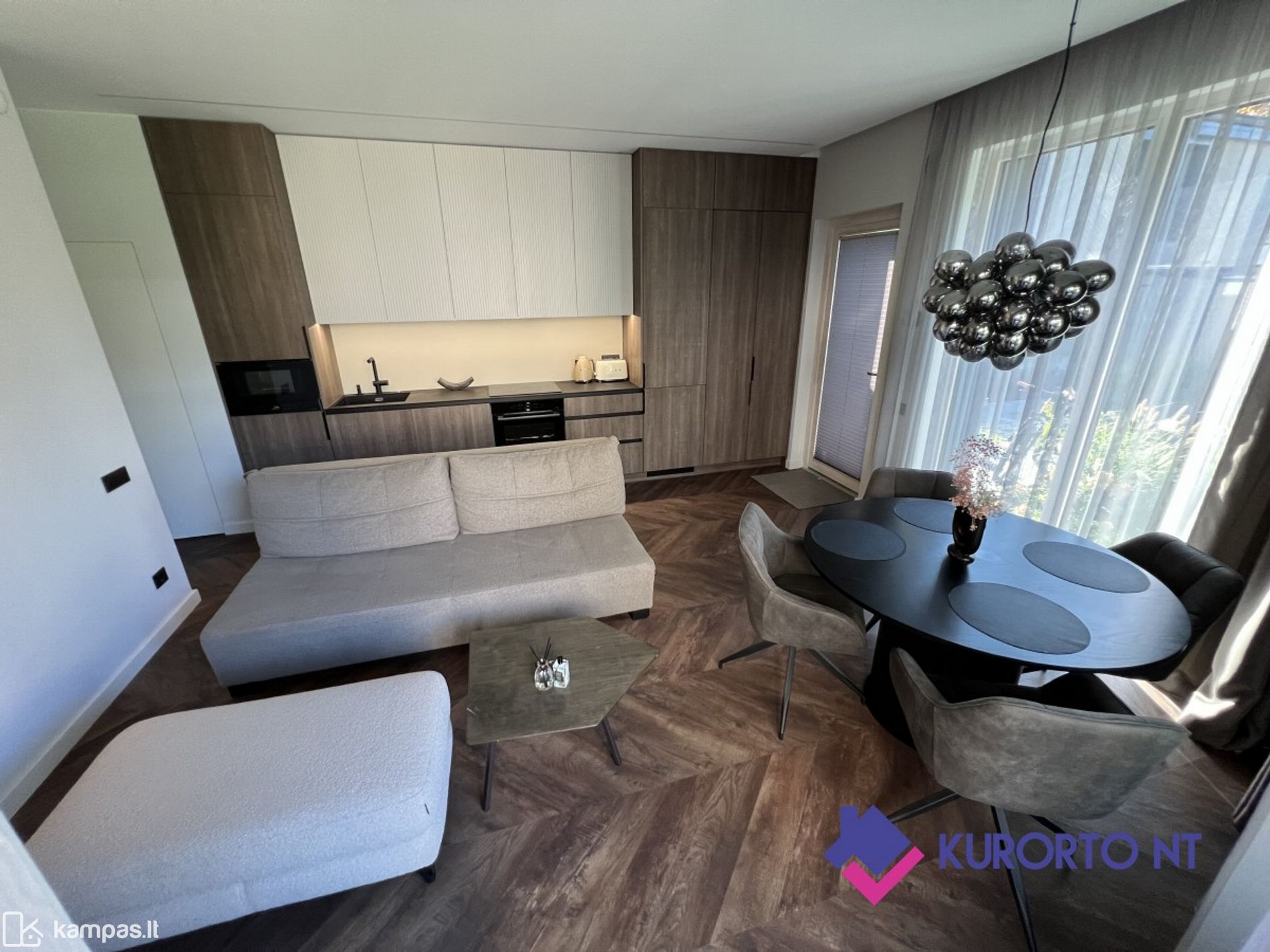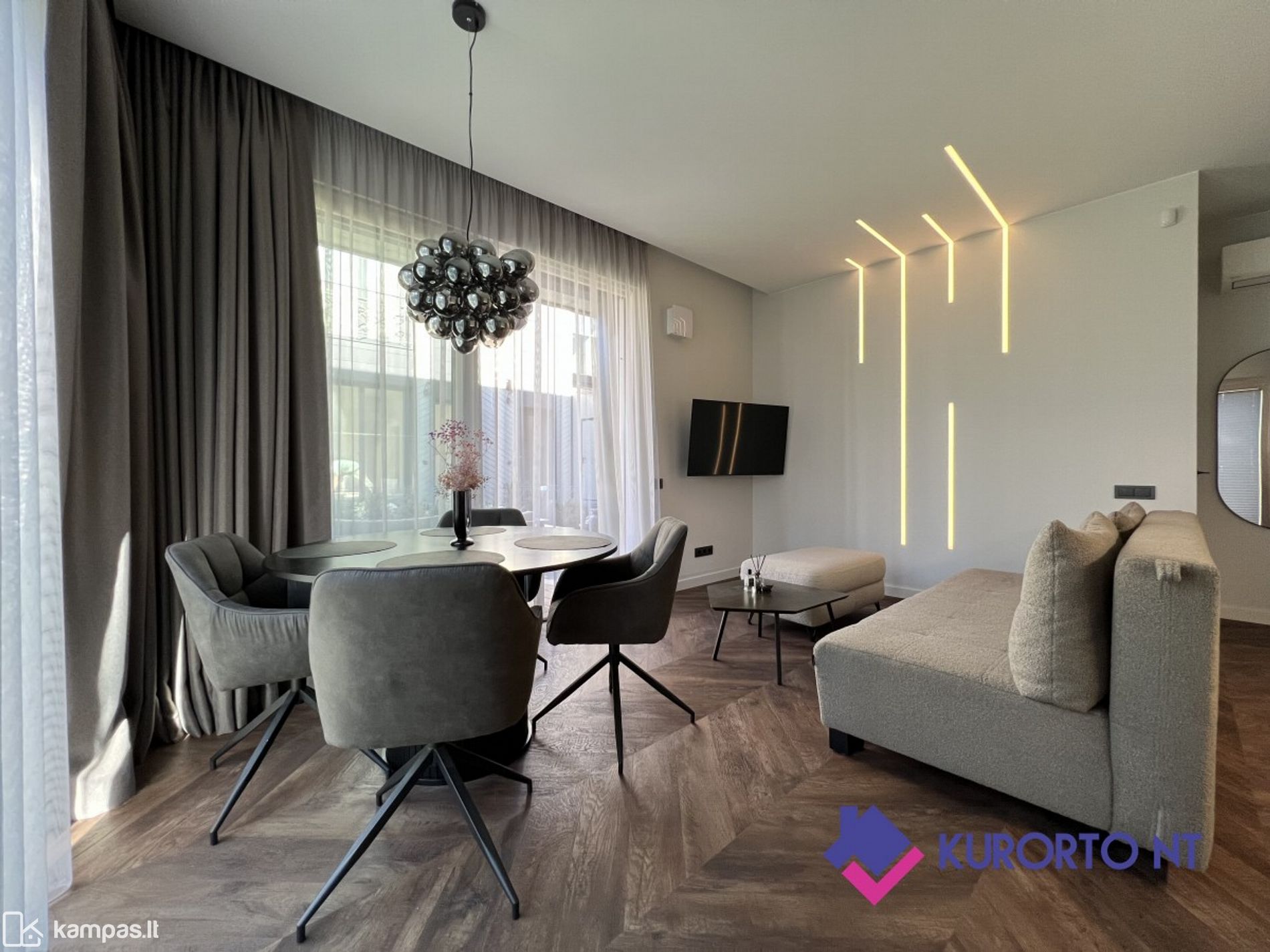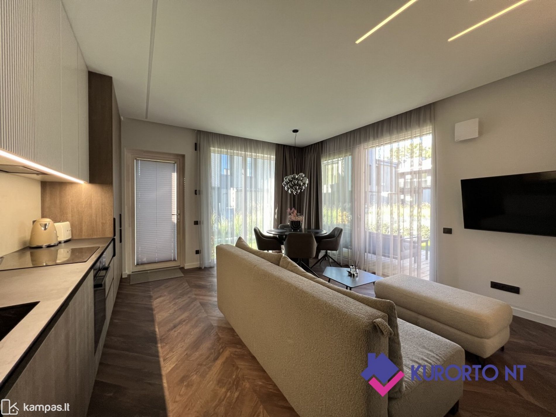 <p>Stilingi 2 kambarių apartamentai su įstiklinta terasa ir nuosavu kiemeliu prestižiniame projekte „Vanagupės Vilos“, Palangoje</p>