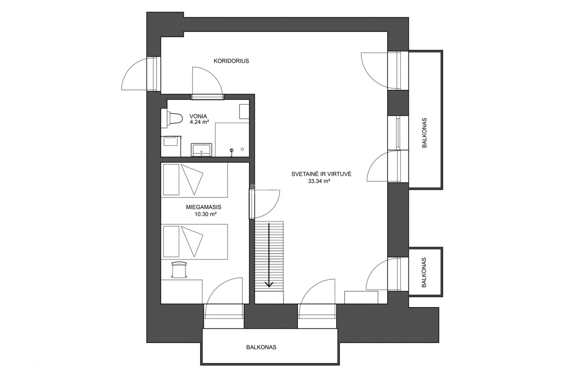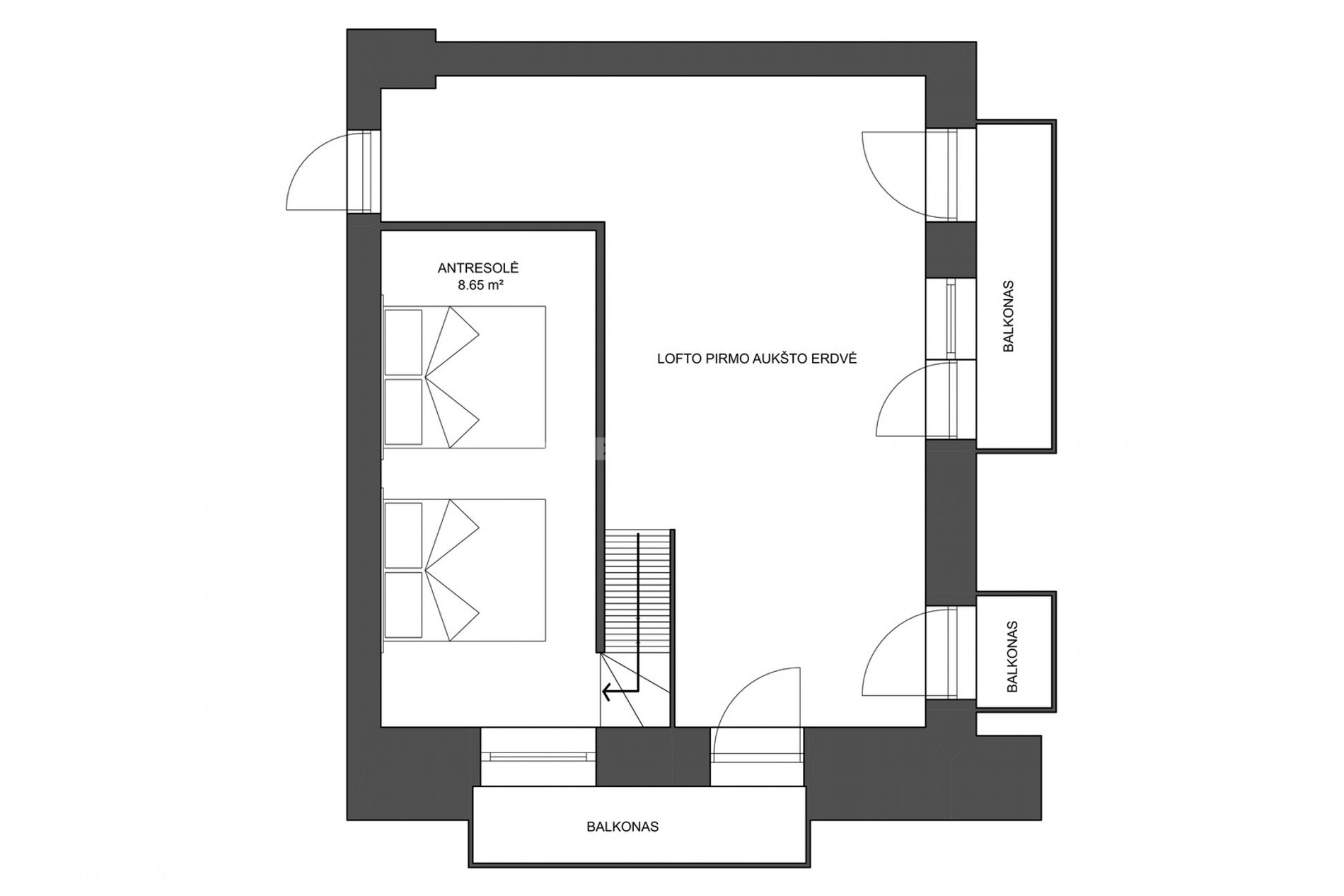 • Kambarių skaičius: 3 (antresolėje 8,65 kv. m);