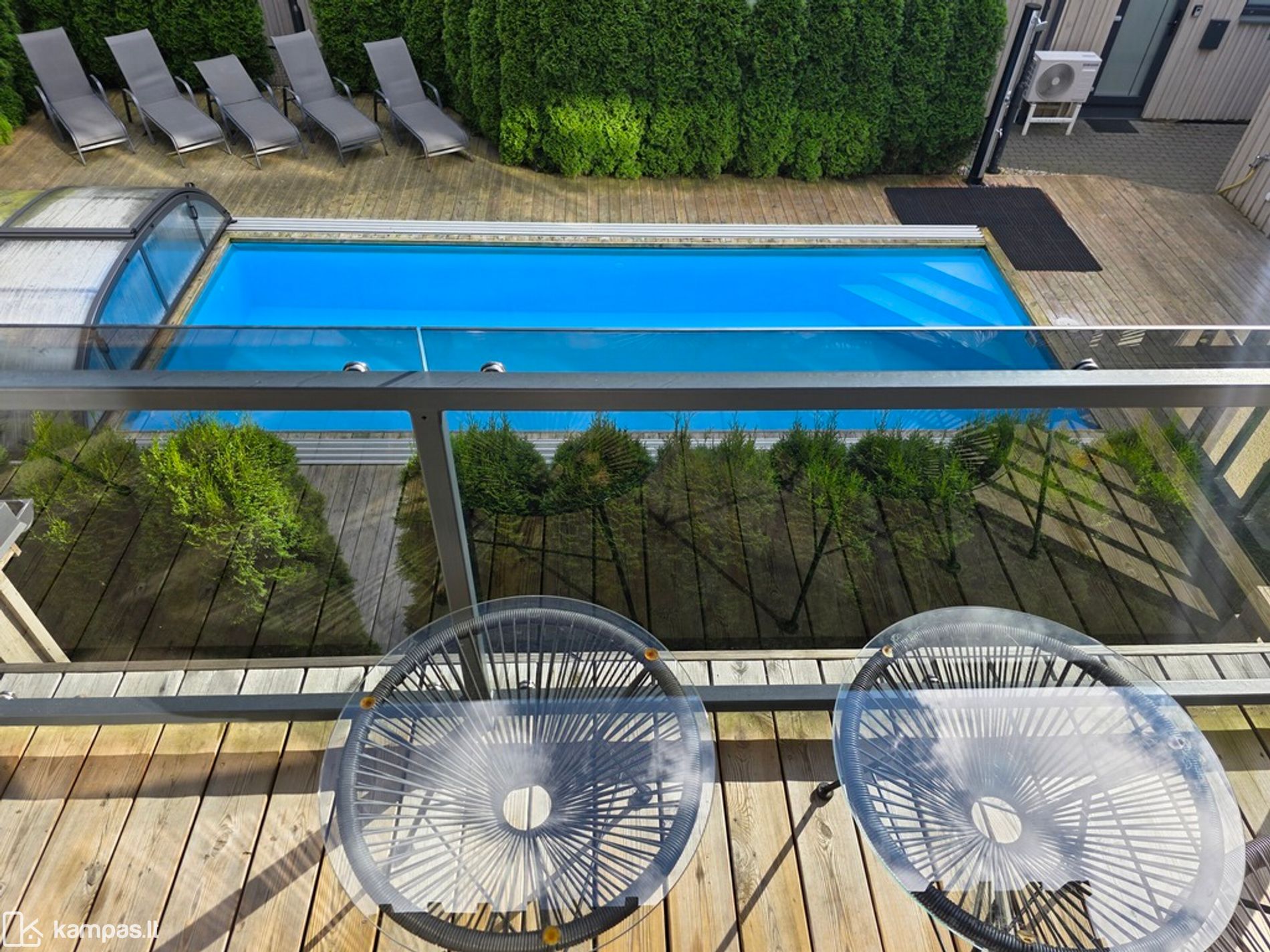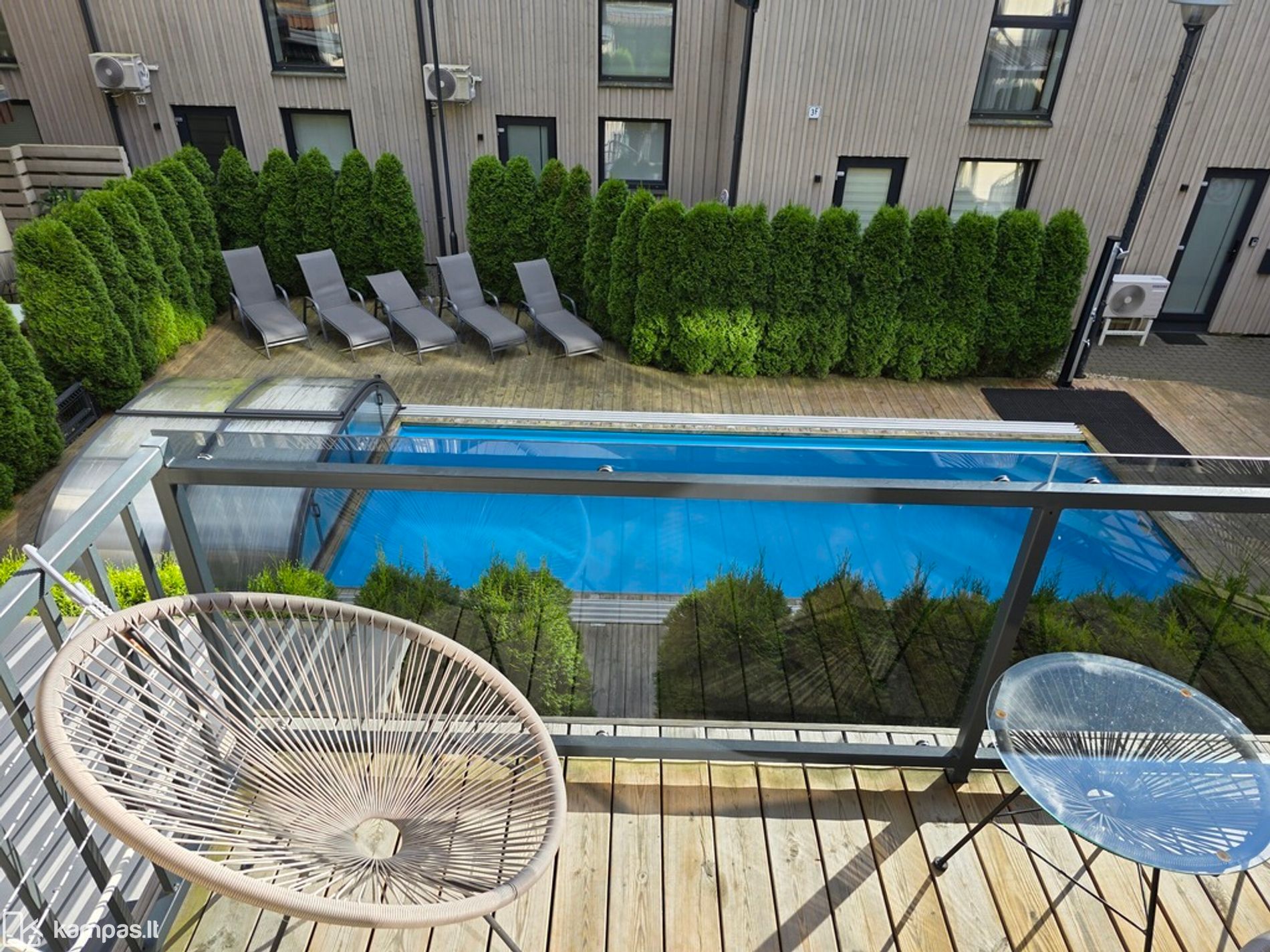 Bendruomenės kieme – didelis baseinas su gultais, vaikų žaidimo aikštelė, kruopščiai prižiūrima aplinka, jauki atmosfera, uždara prižiūrima teritorija, šlakbaumas, elektrinių automobilių įkrovimo stotelė, dviračių nuoma.