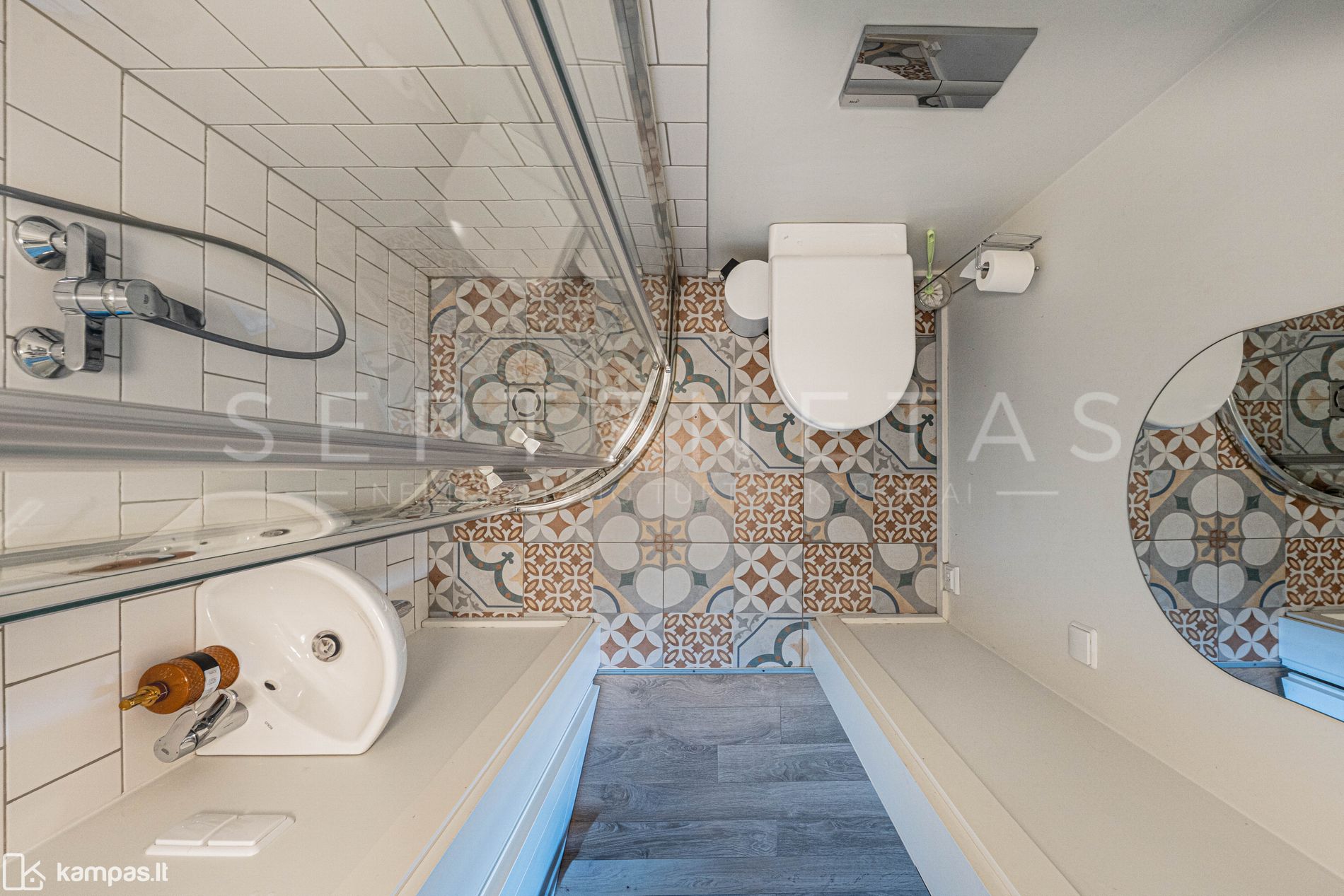 - Vonios ir WC patalpos grindys bei sienos išklotos plytelėmis;
