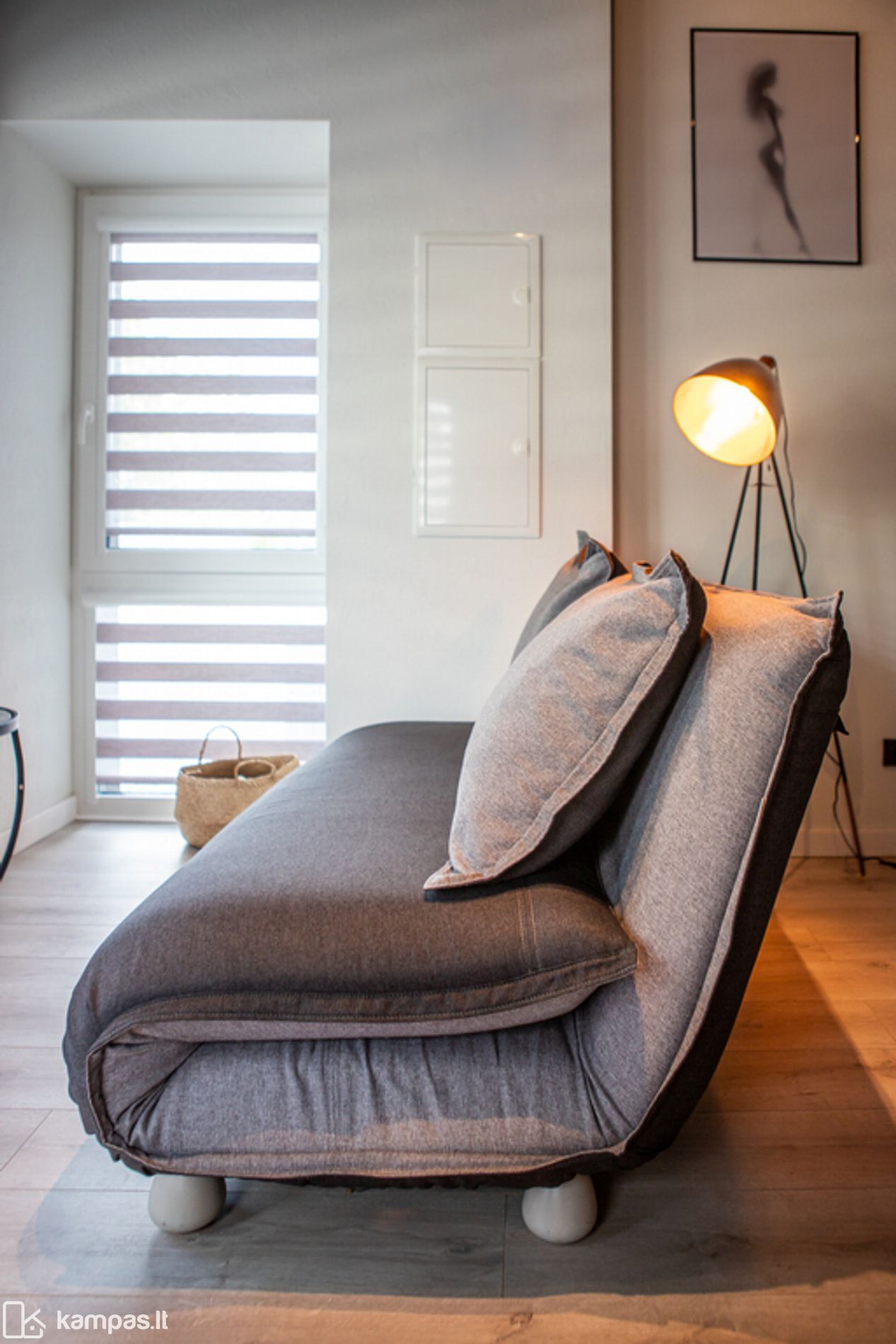 - Atvira virtuvė su svetaine — moderniai sujungta erdvė, leidžianti optimaliai išnaudoti 28 m²;
