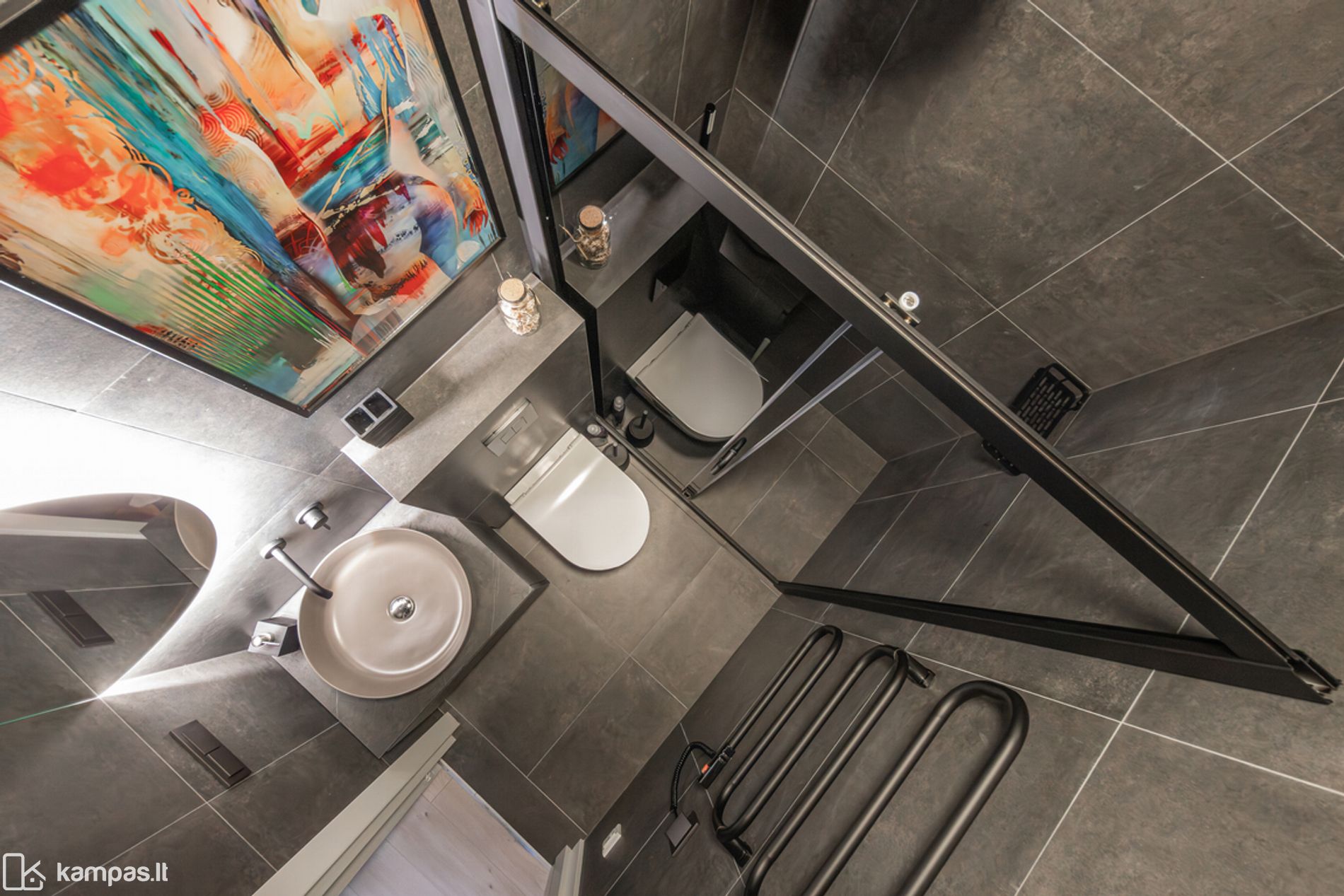 - Kompaktiška, bet patogi sanitarinio mazgo zona su dušu;