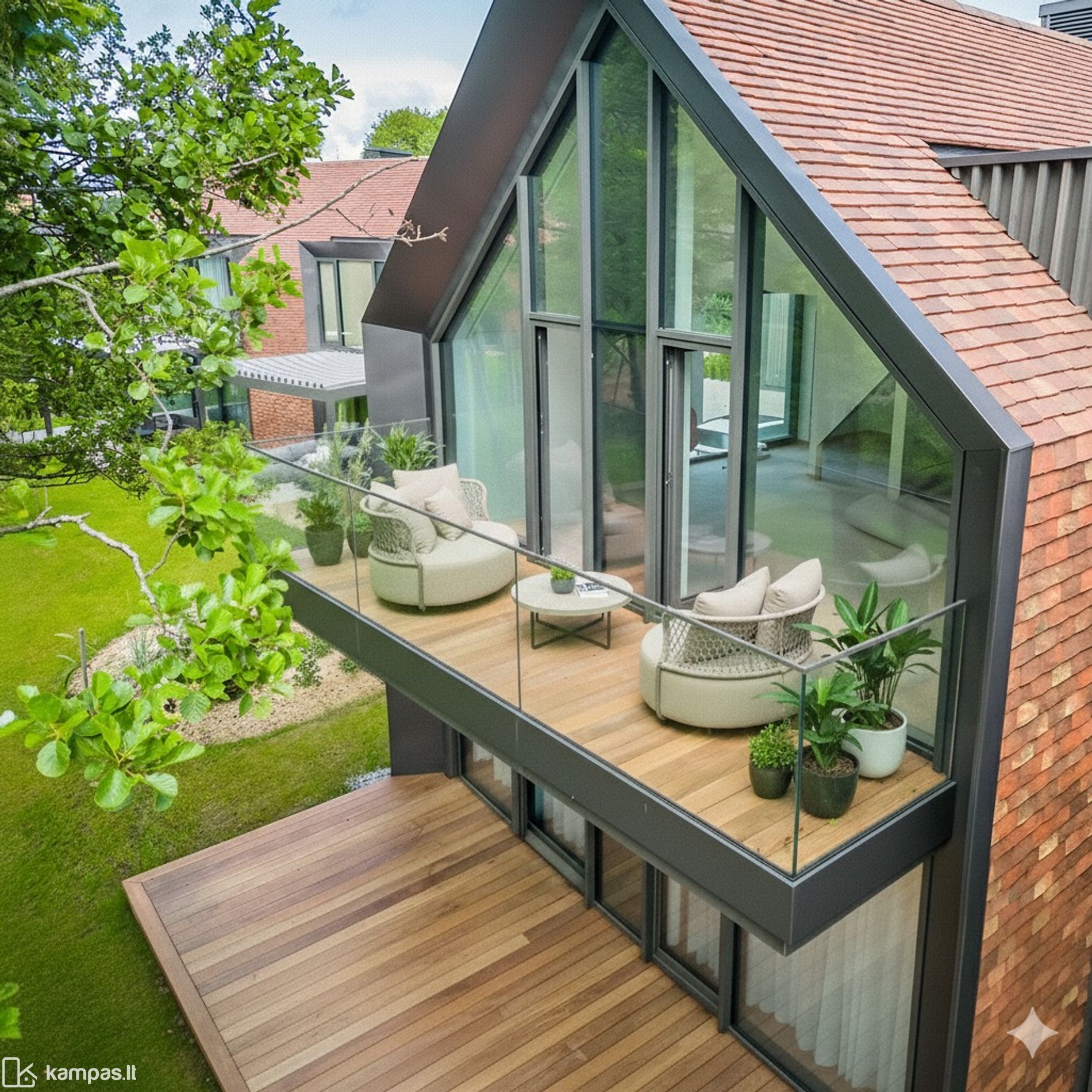 • Butas su erdviu balkonu, 9 kv. m. ploto;