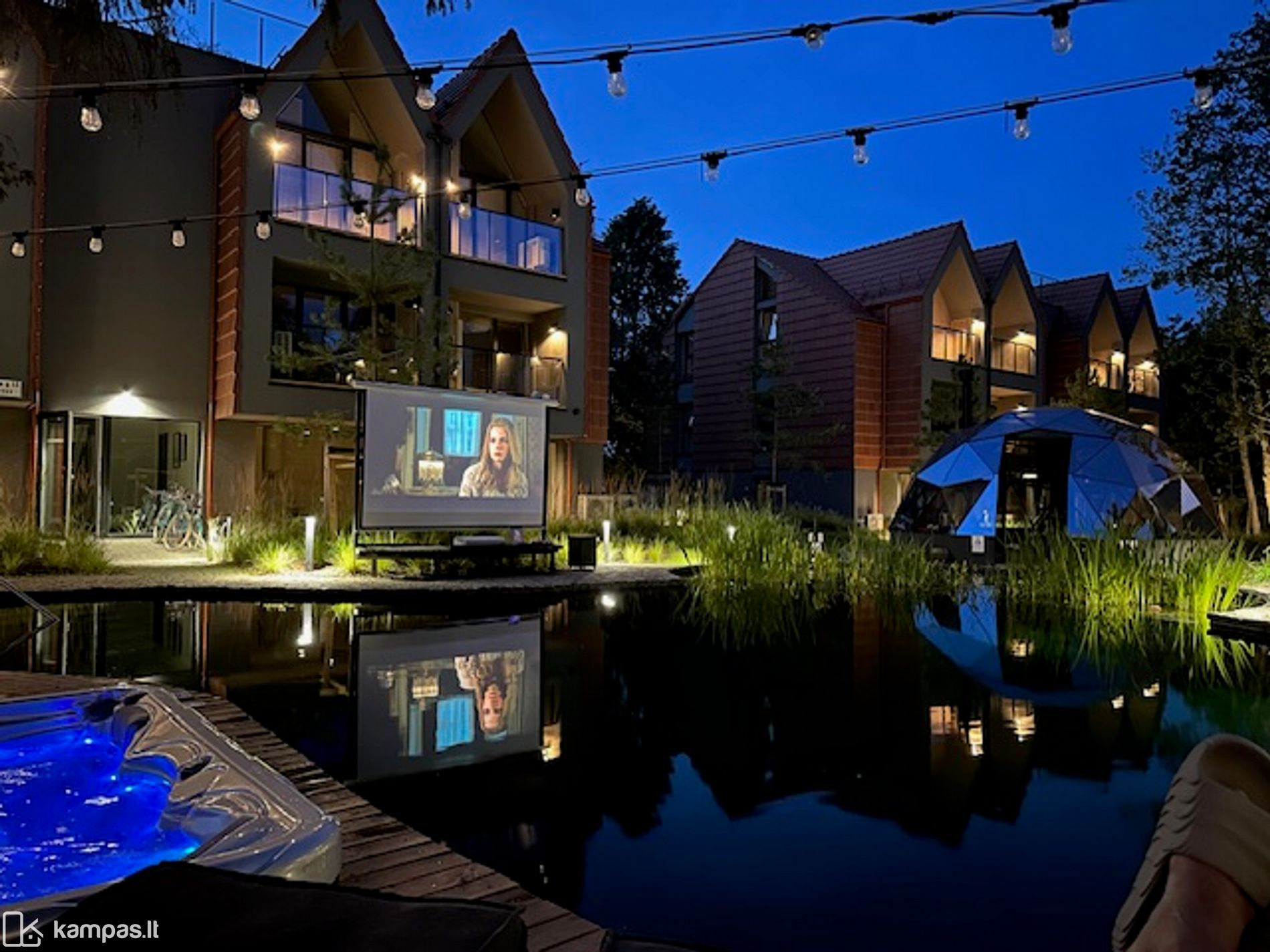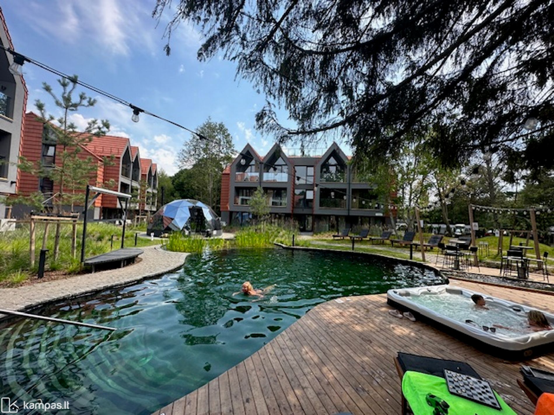 - Sūkurinė vonia po atviru dangumi, kupolas laisvalaikio pramogoms,
