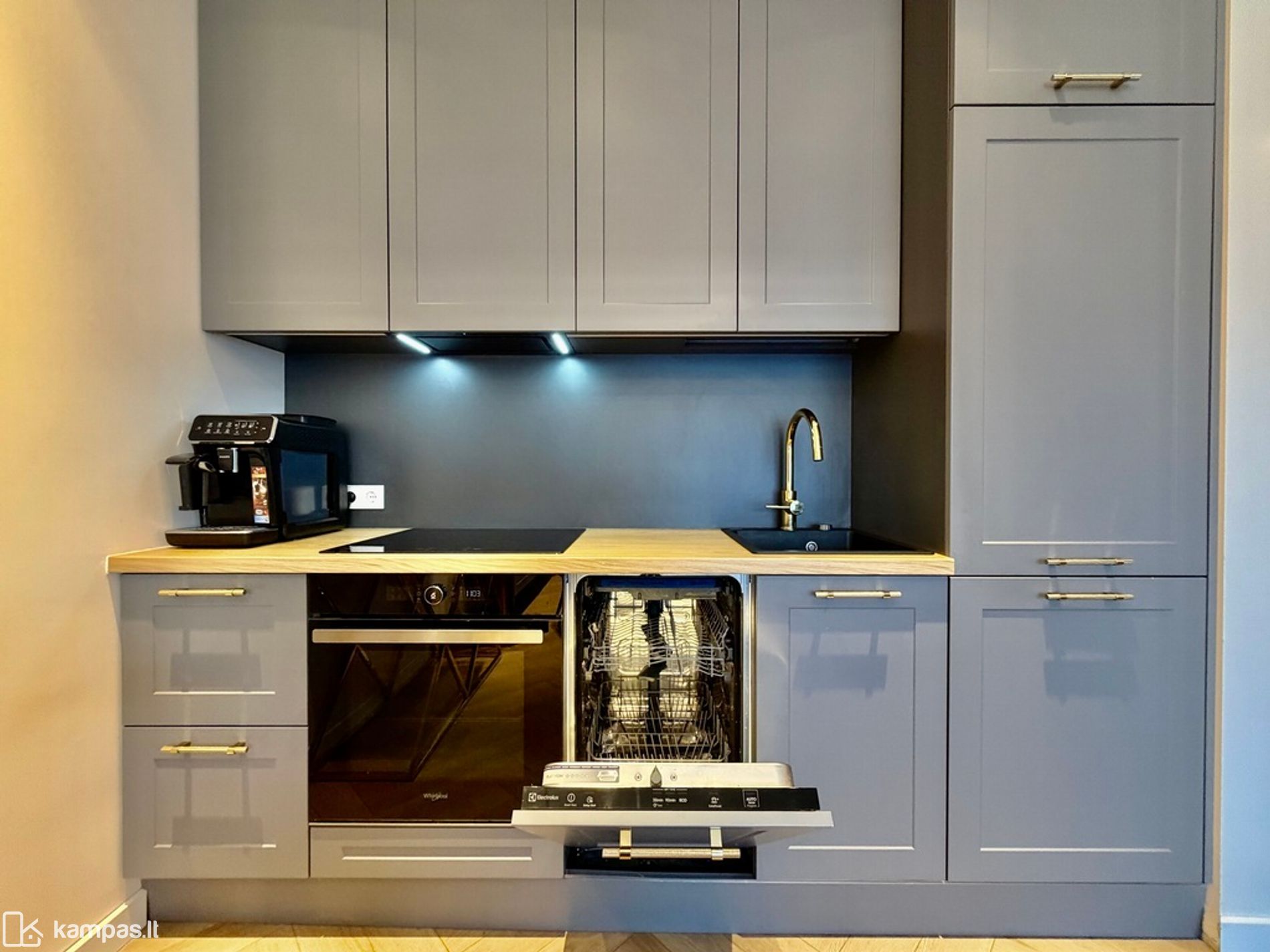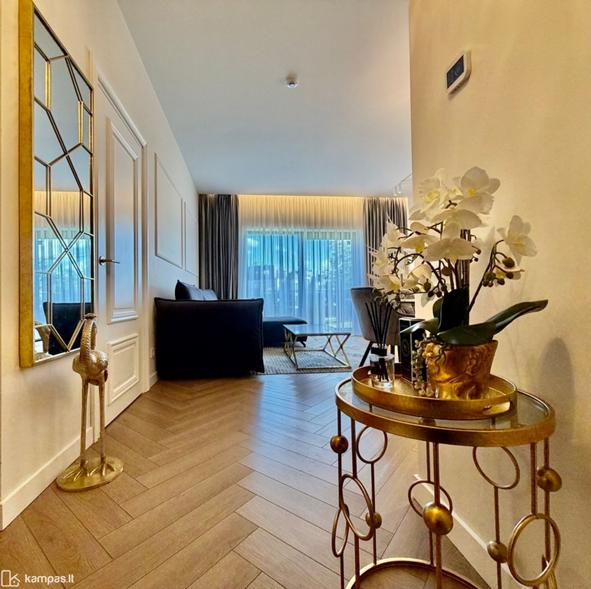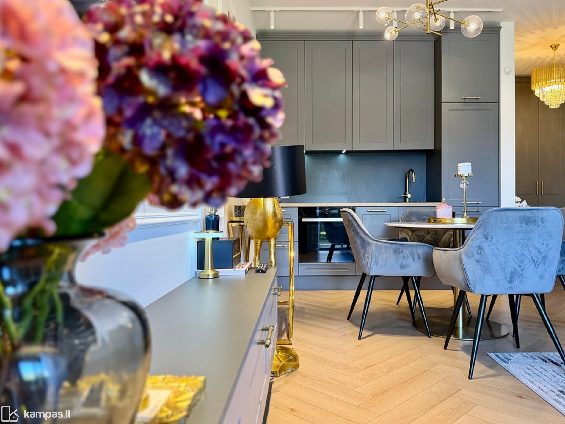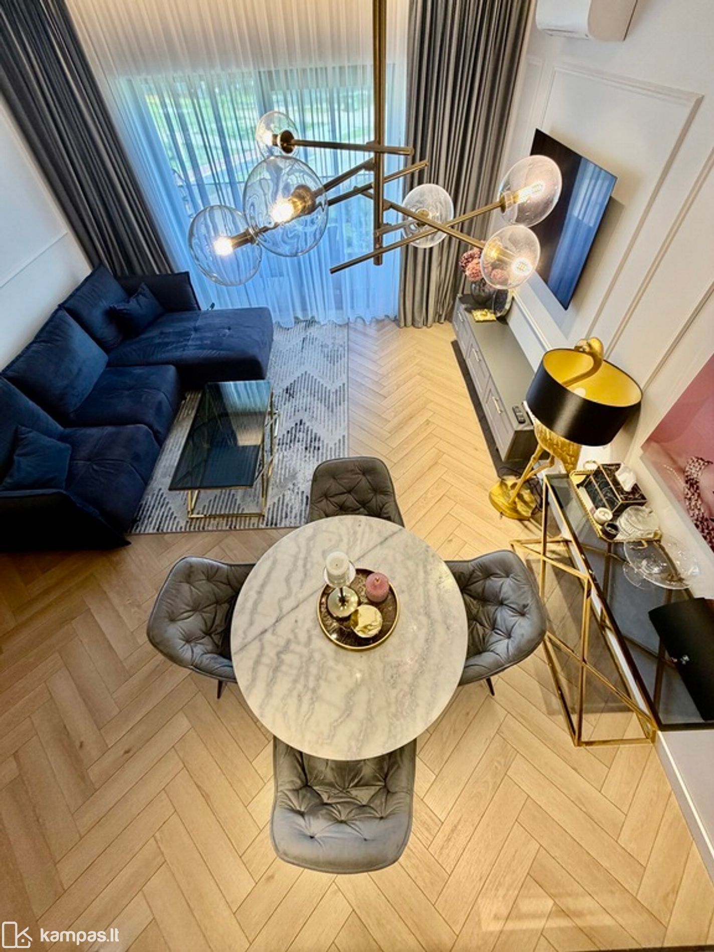 Šviesus ir stilingas dviejų kambarių butas (41 kv. m) įrengtas su meile ir dėmesiu detalėms. Skoningas interjeras apjungia funkcionalumą ir jaukumą – naudoti kokybiški baldai, gaminti pagal individualų užsakymą, bei aukštos klasės buitinė technika.