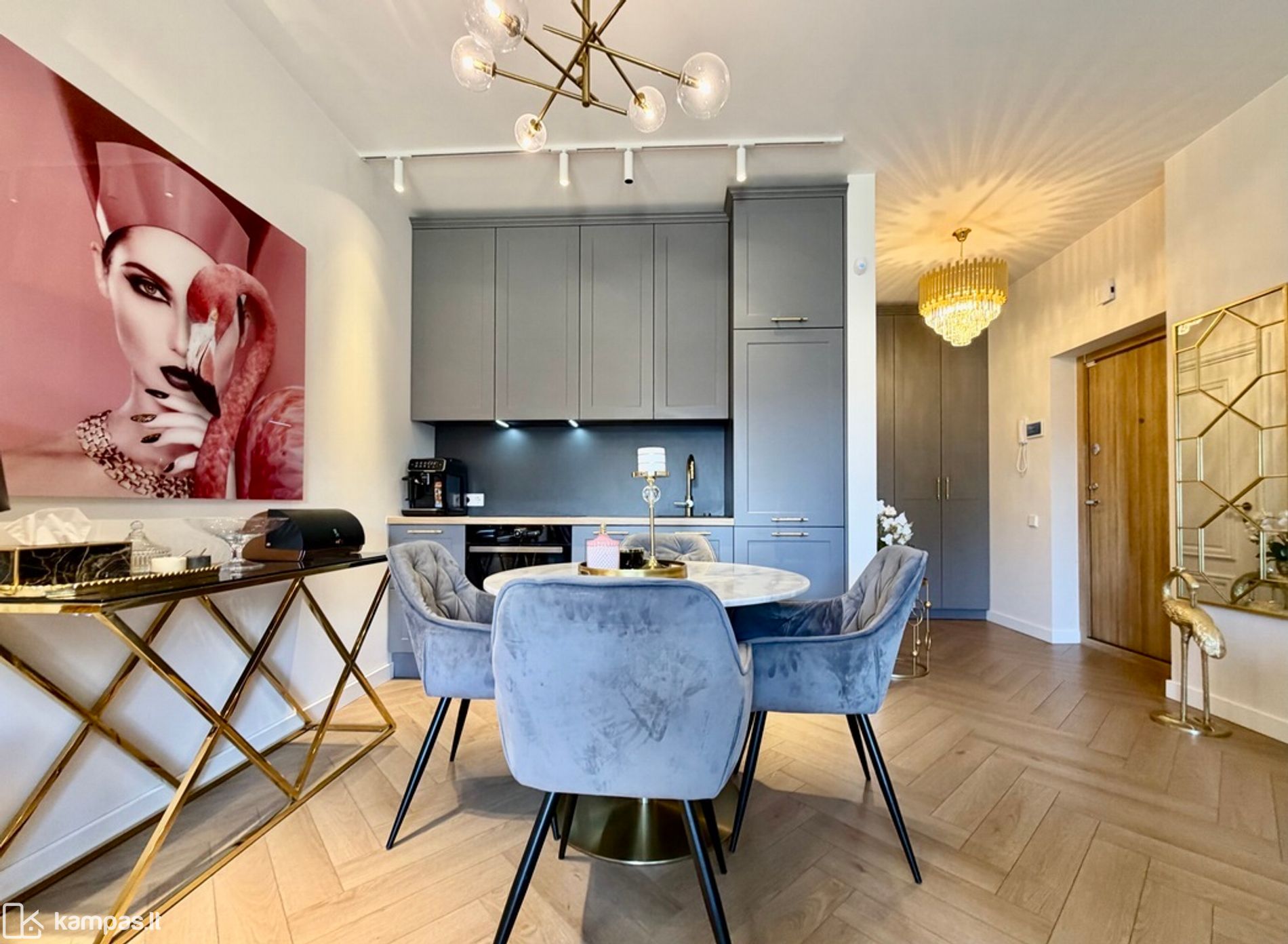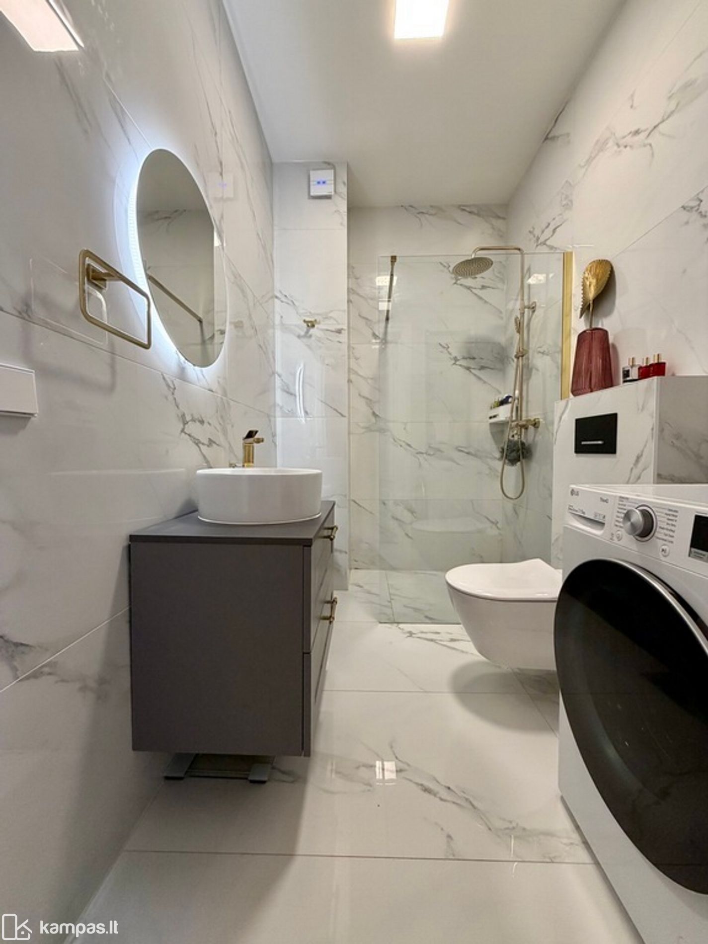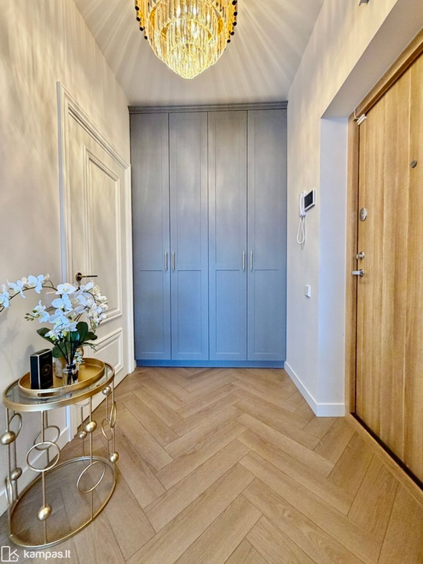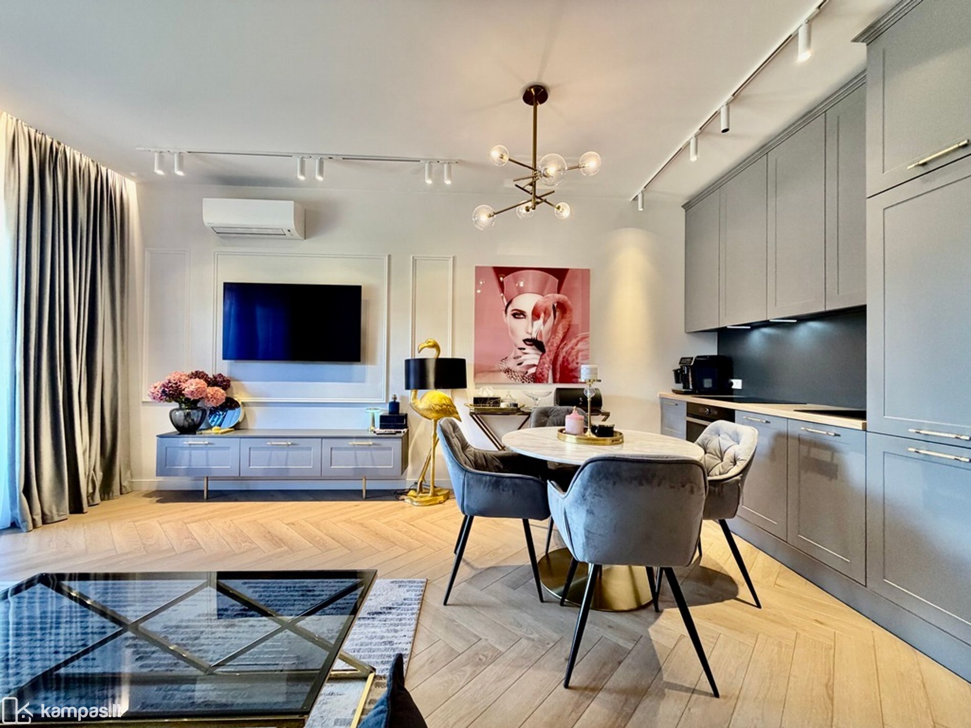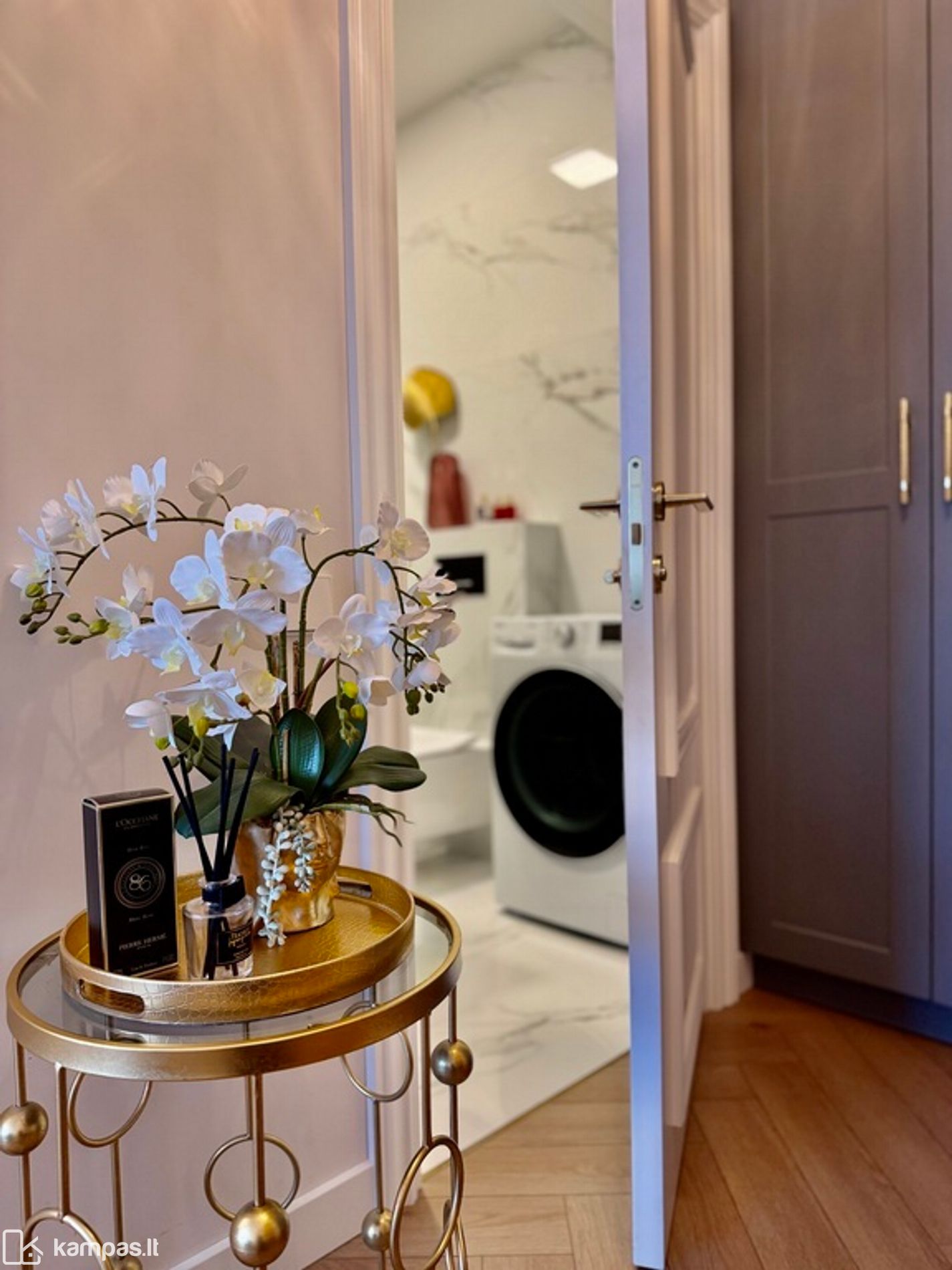 Šviesus ir stilingas dviejų kambarių butas (41 kv. m) įrengtas su meile ir dėmesiu detalėms. Skoningas interjeras apjungia funkcionalumą ir jaukumą – naudoti kokybiški baldai, gaminti pagal individualų užsakymą, bei aukštos klasės buitinė technika.