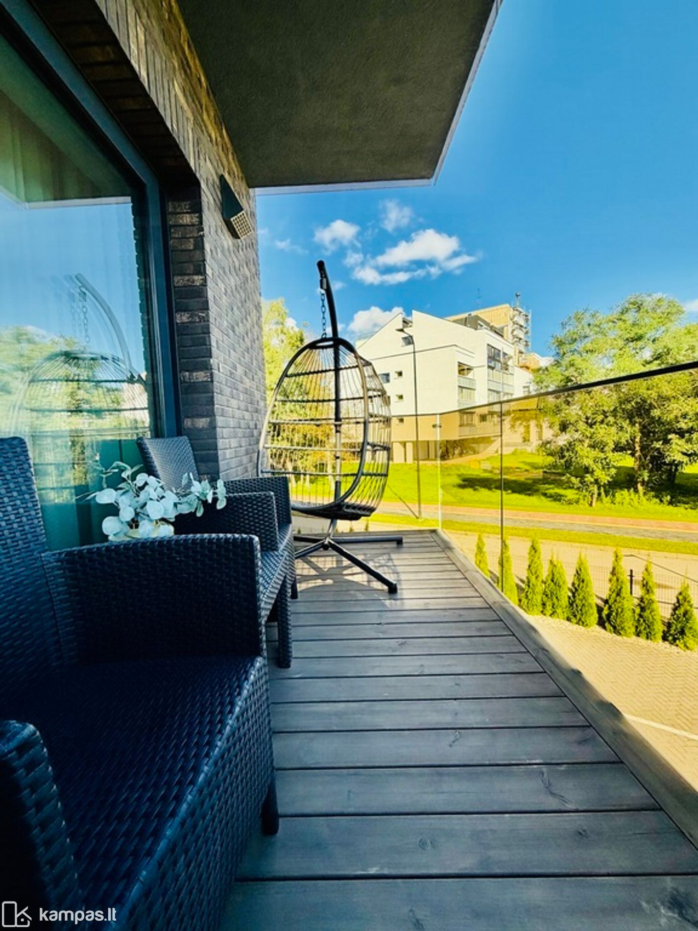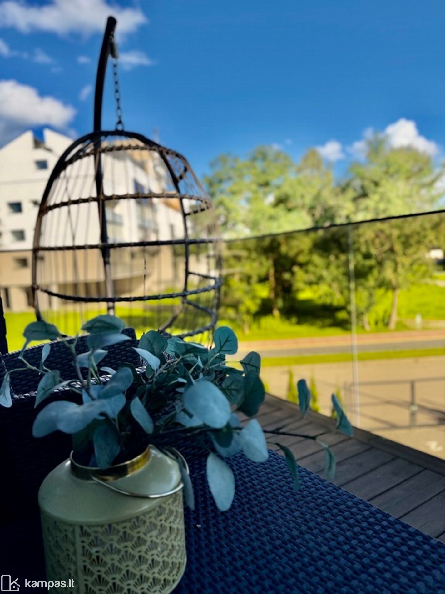 Rytinės saulės apšviestas, erdvus balkonas – tai tarsi atskira poilsio erdvė, kur galėsite mėgautis pusryčiais, knyga ar vakaro pokalbiais. Stumdomos stiklinės durys sukuria vientisą ryšį tarp vidaus ir lauko erdvių, leisdamos gamtai tapti Jūsų kasdienybės dalimi.