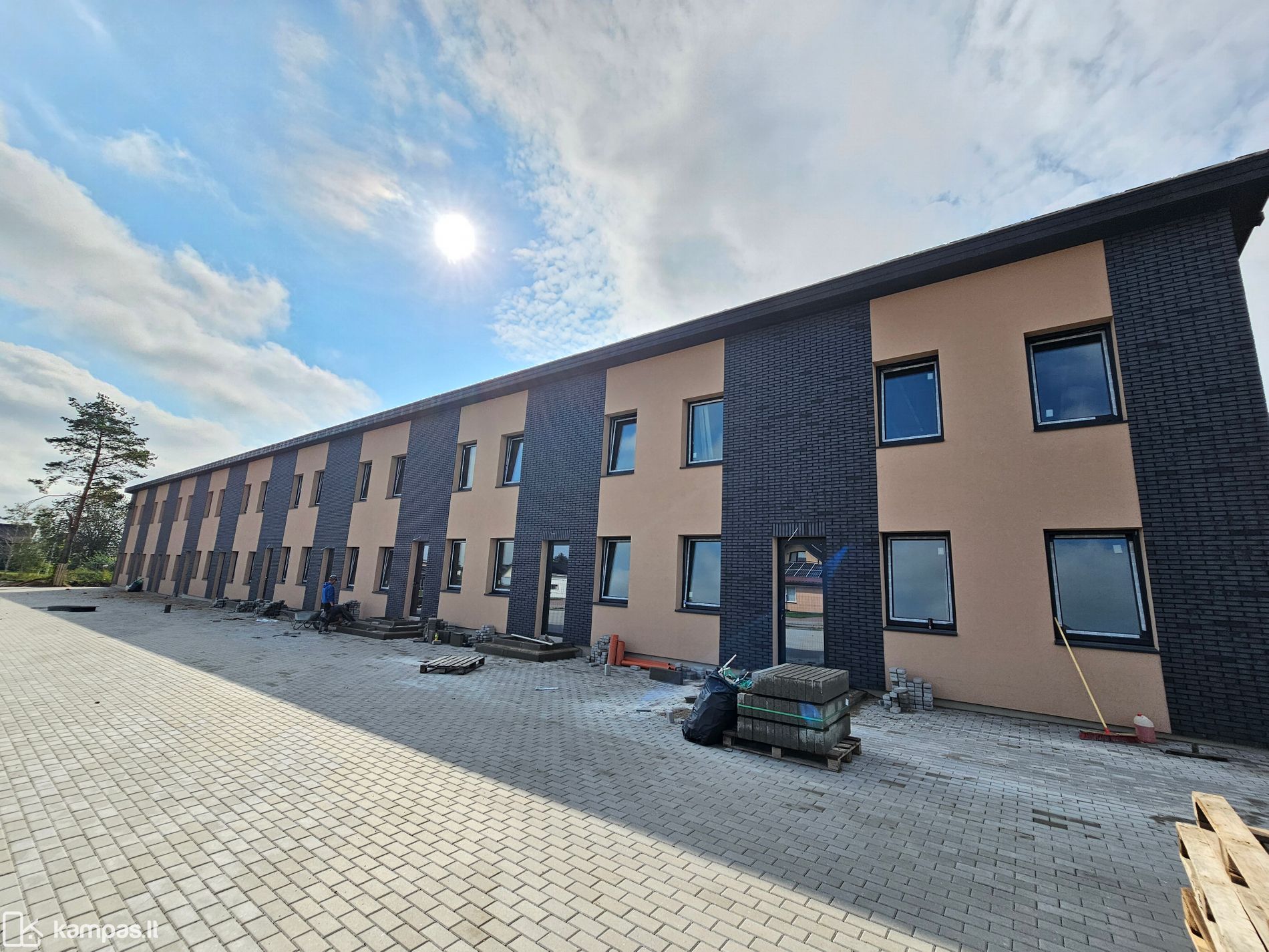 - sutvarkytas gerbūvis, išklotos trinkelės ir užsodinta veja.