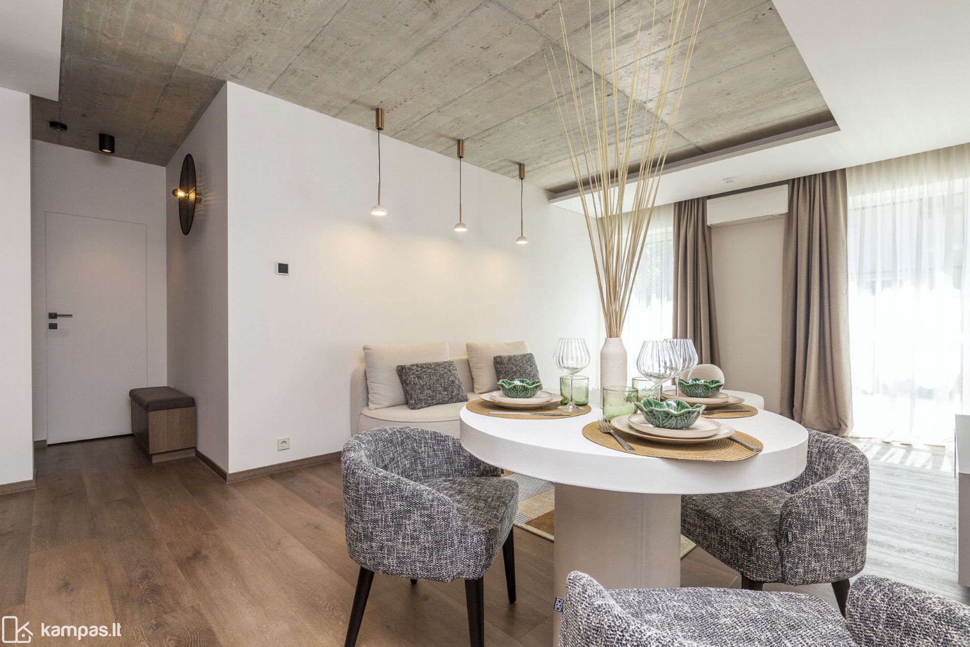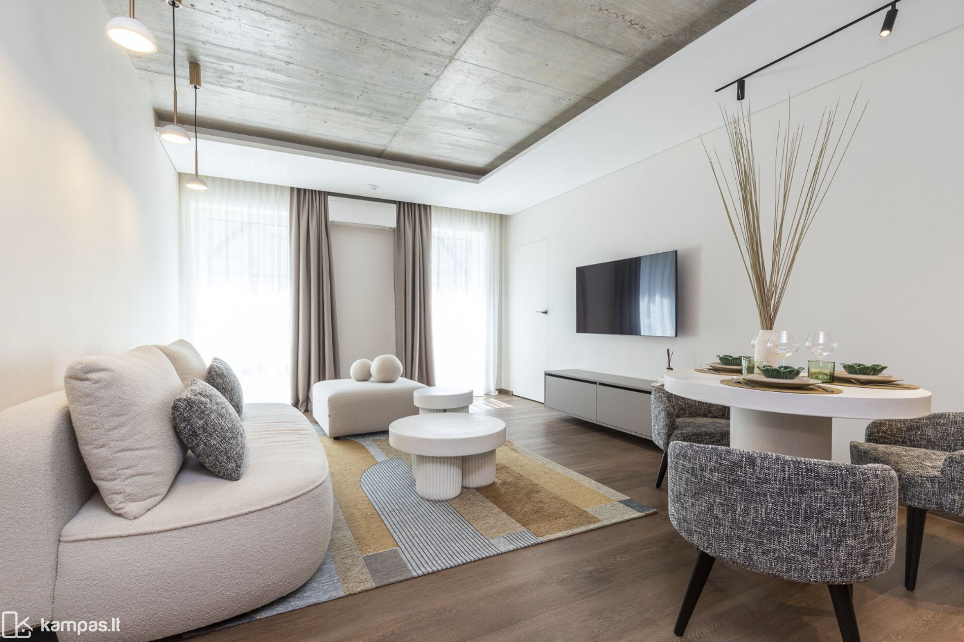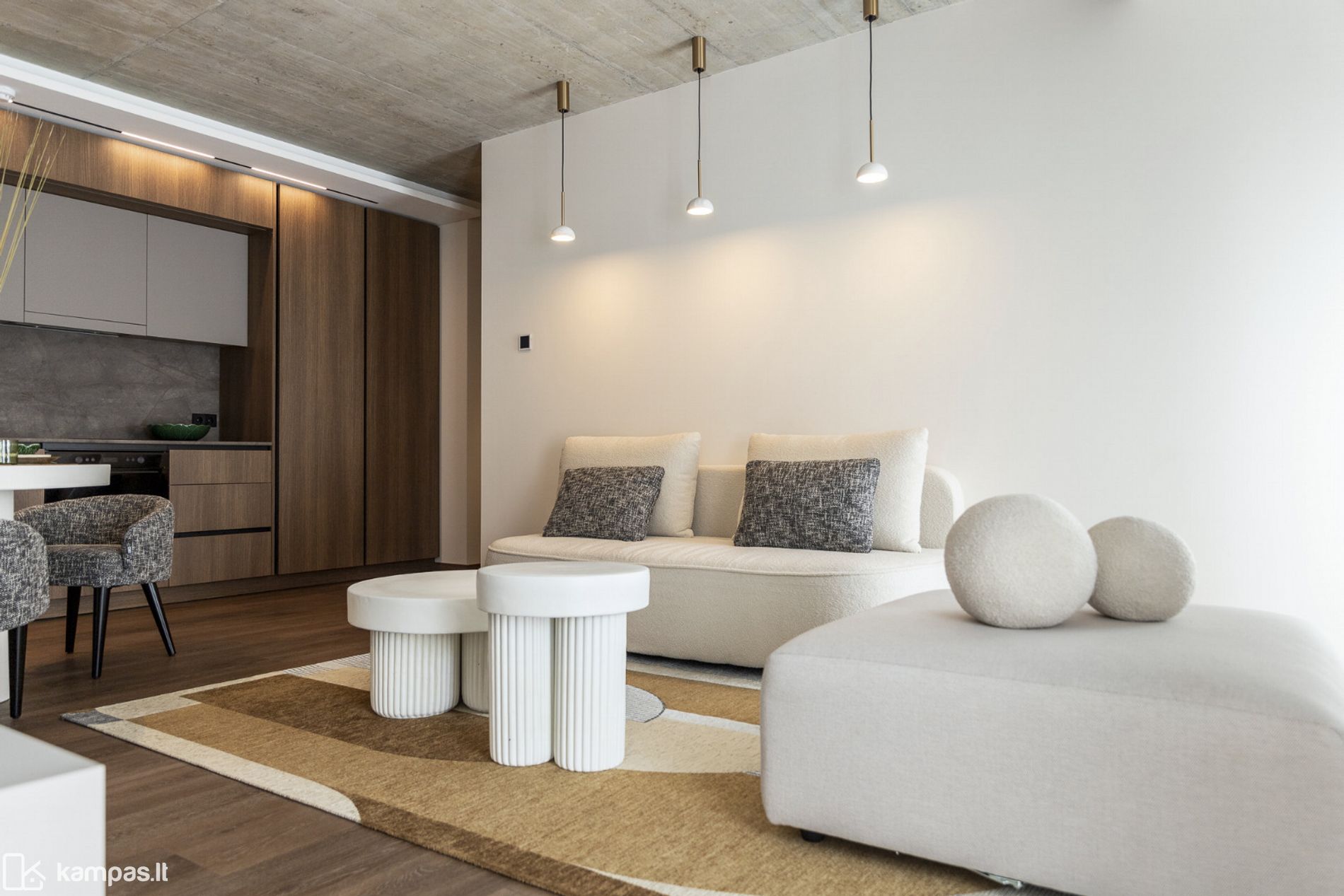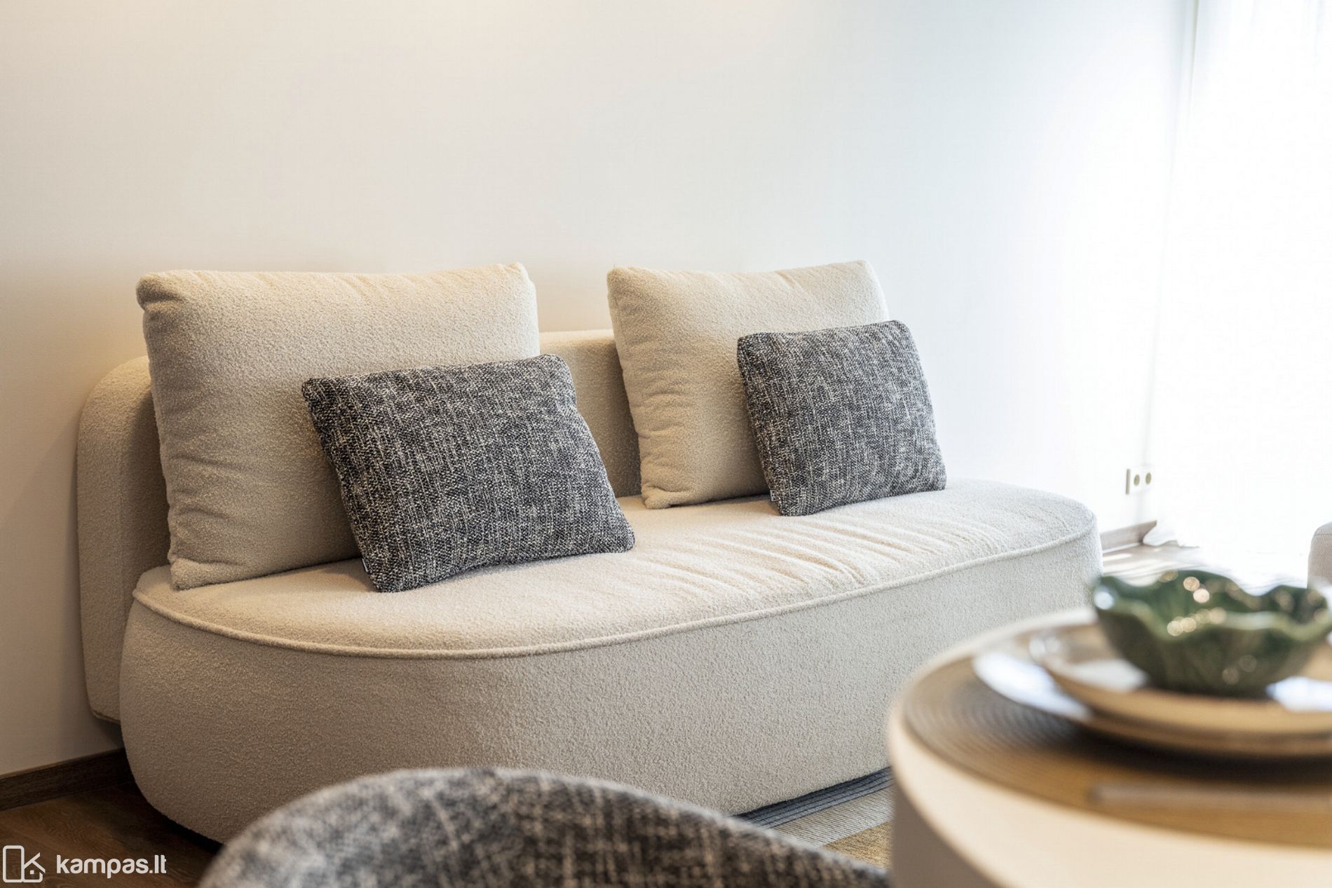 • 2 kambariai (miegamasis ir erdvi svetainė, sujungta su virtuve);